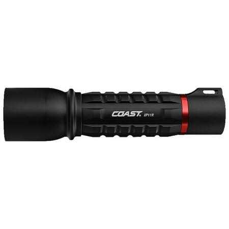 Cut through deep darkness. The COAST XP11R showcases how power meets performance in our XP professional series, delivering ultra-bright light and four-mode, multi-beam capability at up to 2100 lumens on Turbo Modebold enough for midnight searches but weighing in at less than 6 ounces. Featuring COAST Rechargeable Dual Power technology, this IP54 dust-resistant and storm proof flashlight is powered by a COAST ZITHION-X? rechargeable battery (charging cable included) but can also run on standard alkaline AAAs (purchased separately)with a real-time power indicator so that you always know when to power up. COAST-patented SLIDE FOCUS optical technology shines the Ultra View Flood Beam and BULLS-EYE? Spot Beam with seamless transitions at up to 220 meters.