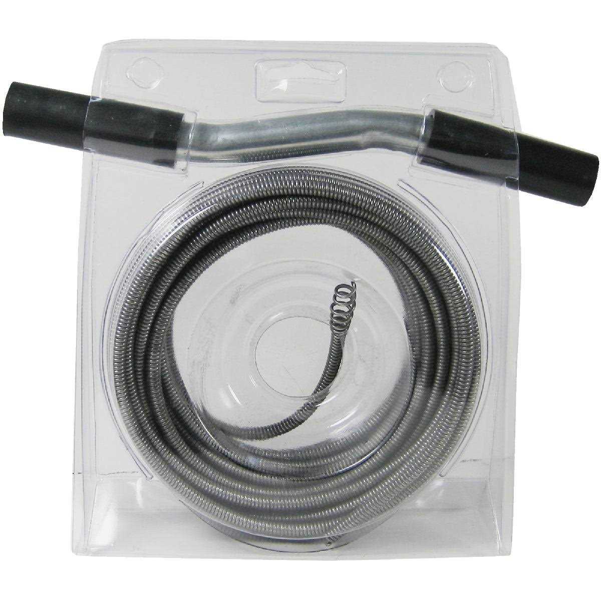 Unclog small and medium household drains rust resistant, high grade, high carbon round diameter, spring steel wire, galvanized torque-twist, steel handle. Integrated corkscrew open-wound boring head. High quality spring wire offers maximum flexibility for the tightest bends. The one-piece boring head quickly threads through strainer cross bars to offer maneuverability for clearing stubborn clogs.
