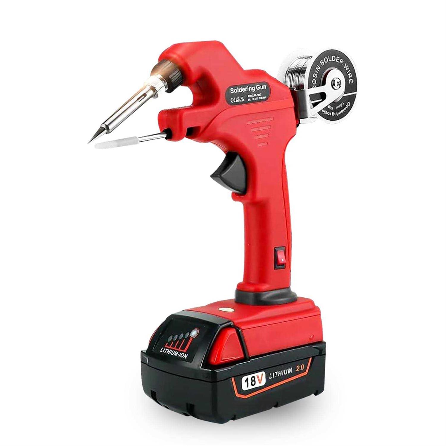 【Compatibility With for Milwaukee M18 Battery Models】BATTERY CHARGER NOT INCLUDED! HLiePiHa Cordless LED work light powered by Milwaukee M18 18V battery model: M18, 48-11-1811, 48-11-1840, 48-11-1841, 48-11-1850, 48-11-1852, 48-11-1815, 48-11-1820, 48-11- 1822, 48-11-1828, 48-59-181, 48-59-1850, C18B, Li18, M18, M18B, M18B2, M18B4, M18BX lithium-ion Battery soldering gun ; (2A Battery Included) 【Cordless & Fast Preheating】—Our Soldering Iron Kit are 30W 18-24V battery powered soldering kit adopt ceramic thermal element, takes only 30s to warm up, rapid heat-up, fast welding, up to 450°C, constant temperature, greatly save your working time; Wireless design, No cord, No limits! Conveniently use it anytime,anywhere! For Milwaukee M18 18V Max Li-ion Battery powered for the soldering gun, plug in your CORRECT battery will maintain the soldering iron stand without the bracket; 【Wide Application】— The wireless soldering iron tools meet a variety of DIY needs, such as welding circuit board, appliance repair, jewelry and metal headdress making, computer; The soldering kit is good choice for welding circuit board, Home DIY hobbyists, beginner studying electronics, appliance repair, jewelry welding. Excellent Gifts for Fathers Day and Christmas Day! – Product Specification: – br – NOTE: BATTERY CHARGER NOT INCLUDED(PLEASE BUY WITH CAUTION) – br – br – COLOR: Red&Black – VOLTAGE: 18V/20V Max – WORKING POWER: 30W – BATTERY CHEMISTRY: Llithium-ion Battery – PRODUCT SIZE: 21.5*7*20.5 (8.46*2.76*8.07inches) – WORKING TEMPERATURE: Up to 450°C – TIN WIRE DIAMETER RANGE: It can use tin wire with diameter range of 0.8mm-1.2mm – SOLDER WIRE DIAMETER: diameter 1mm – SOLDER WIRE WEIGHT: 50G – PREHEAT TIME: 30s – MUZZLE: Aluminium muzzle – Box include: 1* soldering gun, 1*50g soldering wire, 1* Use Manual, 1*2A battery – br – br – Indicator Design & Non-slip Rubber Handle: – The cordless Soldering Iron Kit with a LED on/off Indicator, you’ll always know when your Soldering Iron is – in ready to use and when it is off. With Non-slip handle, allow you to easily hold the handle. – br – br – Include 50G Premium Soldering wires: – Package includes 50g of diameter 0.04″ welding wire, the soldering wire has antioxidant for a long time and – good weld ability, melts quick and clean, flows smooth. – br – br – M18, 48-11-1811, 48-11-1840, 48-11-1841, 48-11-1850, 48-11-1852, 48-11-1815, – 48-11-1820, 48-11-1822, 48-11-1828, 48-11-1860, 48-11-1865, 48-11-1880, – 48-11- 48-59-181, 48-59-1850, C18B, Li18, M18, M18B, M18B2, M18B4, M18BX and more; – br – br – br – br – Warm Tips: – The soldering gun works by using high temperature, the nozzle area and the iron tube is very hot(up to 450°C), man do not touch it; – Place the soldering gun up support when it not use; – Switch off the soldering gun after you finish your work; – Store the soldering gun until it has completely cooled. – br – br /p