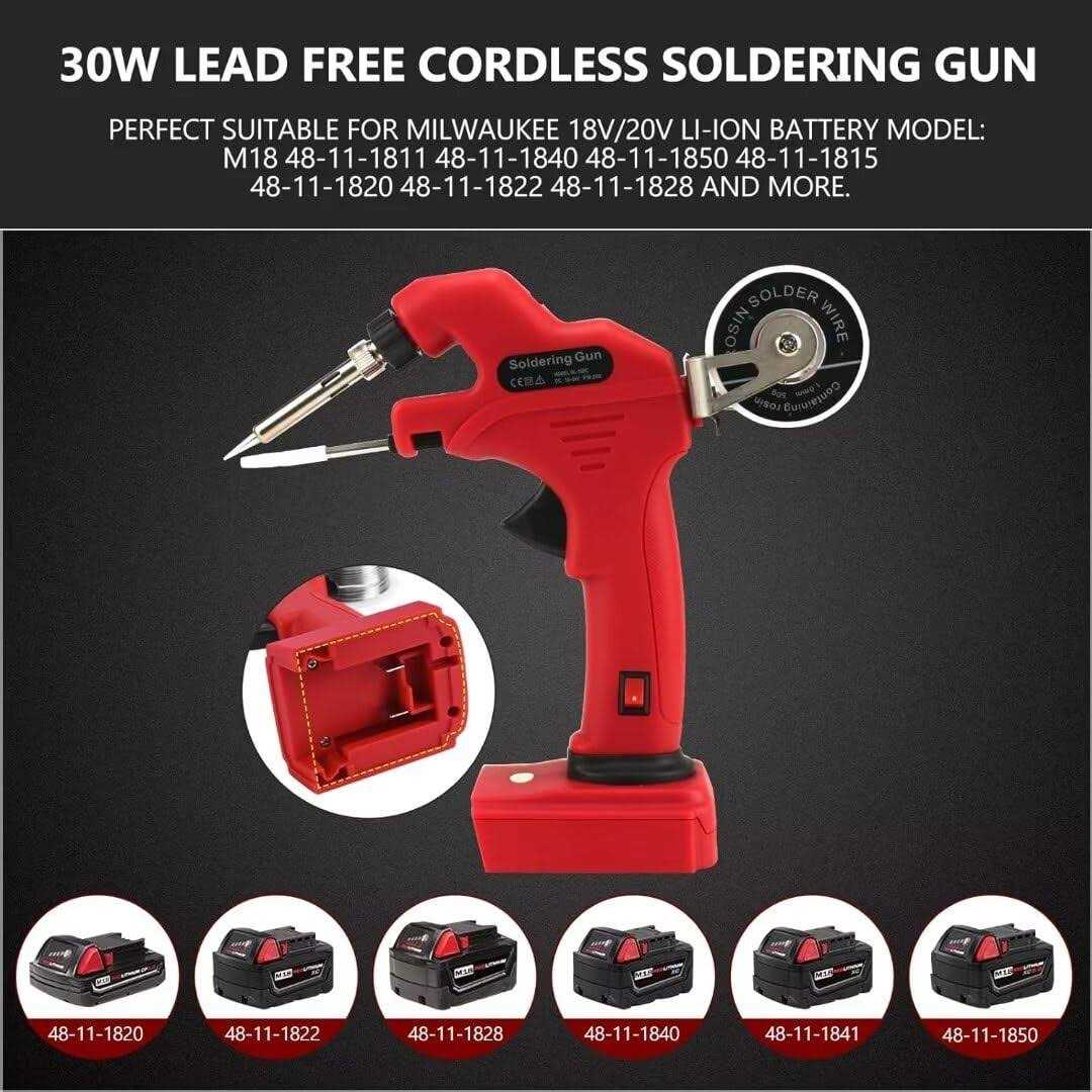 Cordless Soldering Iron Kit, Suitable for Milwaukee M18 18V Li-ion Battery, 30s Quick Preheat Soldering Iron with 50g, 0.04″ Solder, 30W Soldering