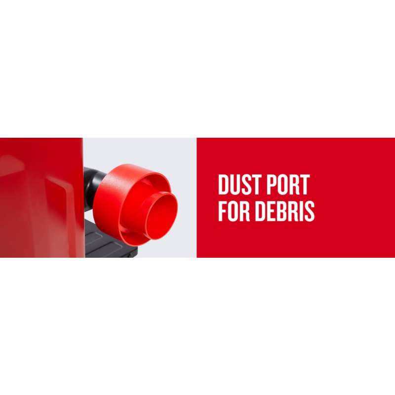 - CLEANER WORKSPACE: Vacuum port for dust collection