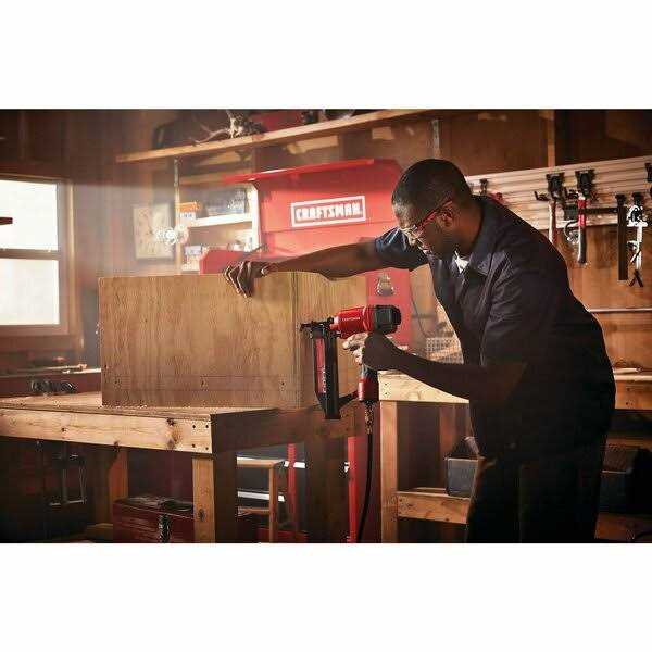 Portable Air Compressors by Craftsman. Details:The 3 Tool & Air Compressor Combo Kit is ready for use out of the box. 6 gal. The Air Compressor is Proudly Made in the USA with Global Materials in Jackson, Tennessee and features an oil-free pump making it more durable and maintenance free. 18 Ga. Brad Nailer and 16 Ga. Straight Finish Nailer have the power you need to drive nails into small trim, shoe molding, and baseboards.