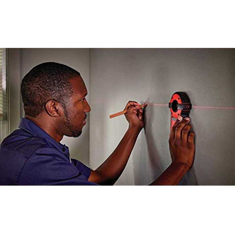 Center marking channel for marking stud location. Includes self-leveling laser and a wall mount bracket. FeaturesComes with a precision leveling base, laser enhancing glasses & a soft protective case. Change laser beam mode with integrated sound mechanism alerting user when out of level Exceeds an accuracy rating of +/-1/4 in. at 30 ft. Automatic reference for angled lines20-ft visible range 100 ft. Plus laser projection. Ribbed housing with rubber over-molds. Center marking channel for marking stud location. Includes self-leveling laser and a wall mount bracket.