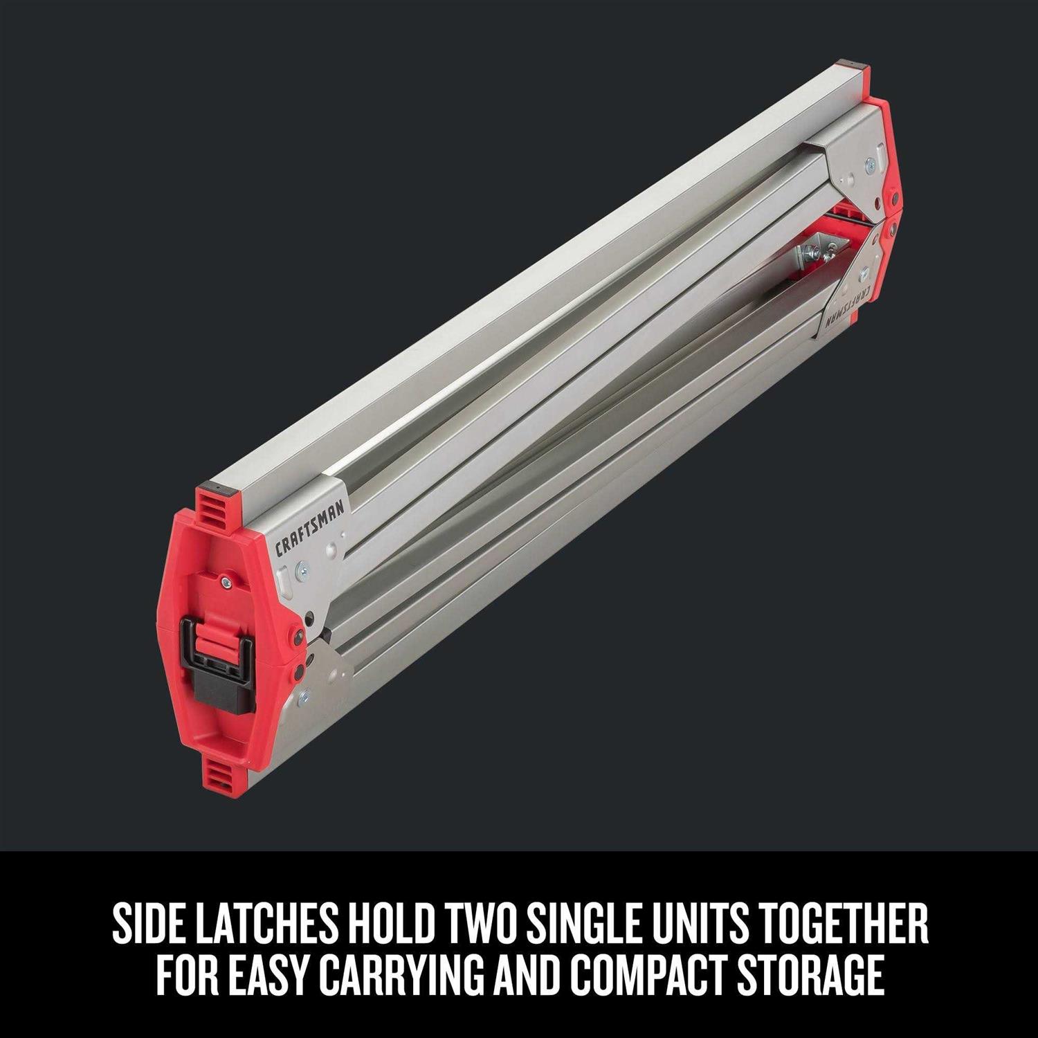 Folding Legs – Enable quick setup and folding of the sawhorse, allows compact storage and easy carry. Metal Legs – Supports 1000 Ibs (per pair), solid stable structure. Metal Bar – Enable clamping applications. Enable carry two sawhorses with one hand. Anti Slip Rubber Pad – To create friction on surface while cutting. CRAFTSMAN Essential 33.66-in W x 28.9-in H Metal Saw Horse.