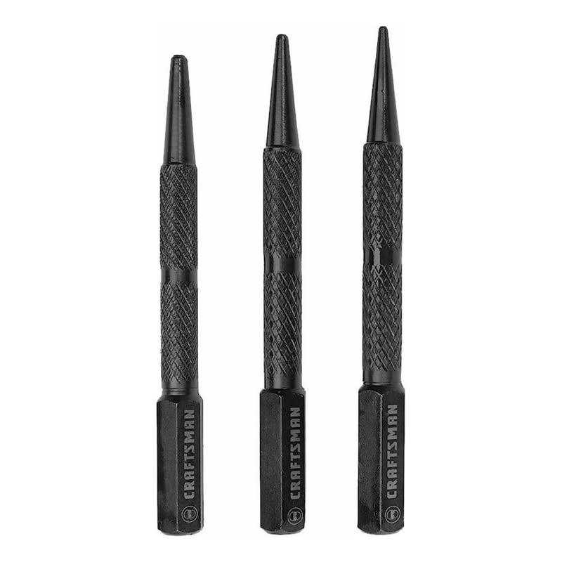 This 3 piece Steel Nail Set has square heads to prevent rolling when set down and also each are fully hardened, precision-milled steel to increase durability. Ideal for setting nails into materials. Long length for setting nails in hard-to-reach areas. Long, beveled tip for easy nail head alignment. Size: 1/32, 2/32, 3/32.