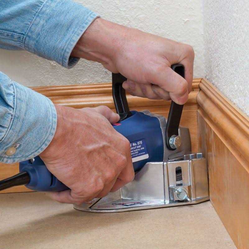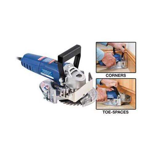 This compact, 8 AMP undercut saw works best for fast undercutting of door jambs. It can also undercut along walls, at inside corner areas, or beneath toe spaces. Height of cut is adjustable from flush to one inch above floor level. Cuts to maximum depth of 1 1/4 In. Dual-angle depth gauge allows cutting at in.straight onin. or 45 angles to the wall. Visual depth gauge scale provides precision depth control at 1/8in. increments. Handle folds down for undercutting beneath toe spaces. Comes with carbide blade, carrying case, blade wrench, and instructions.