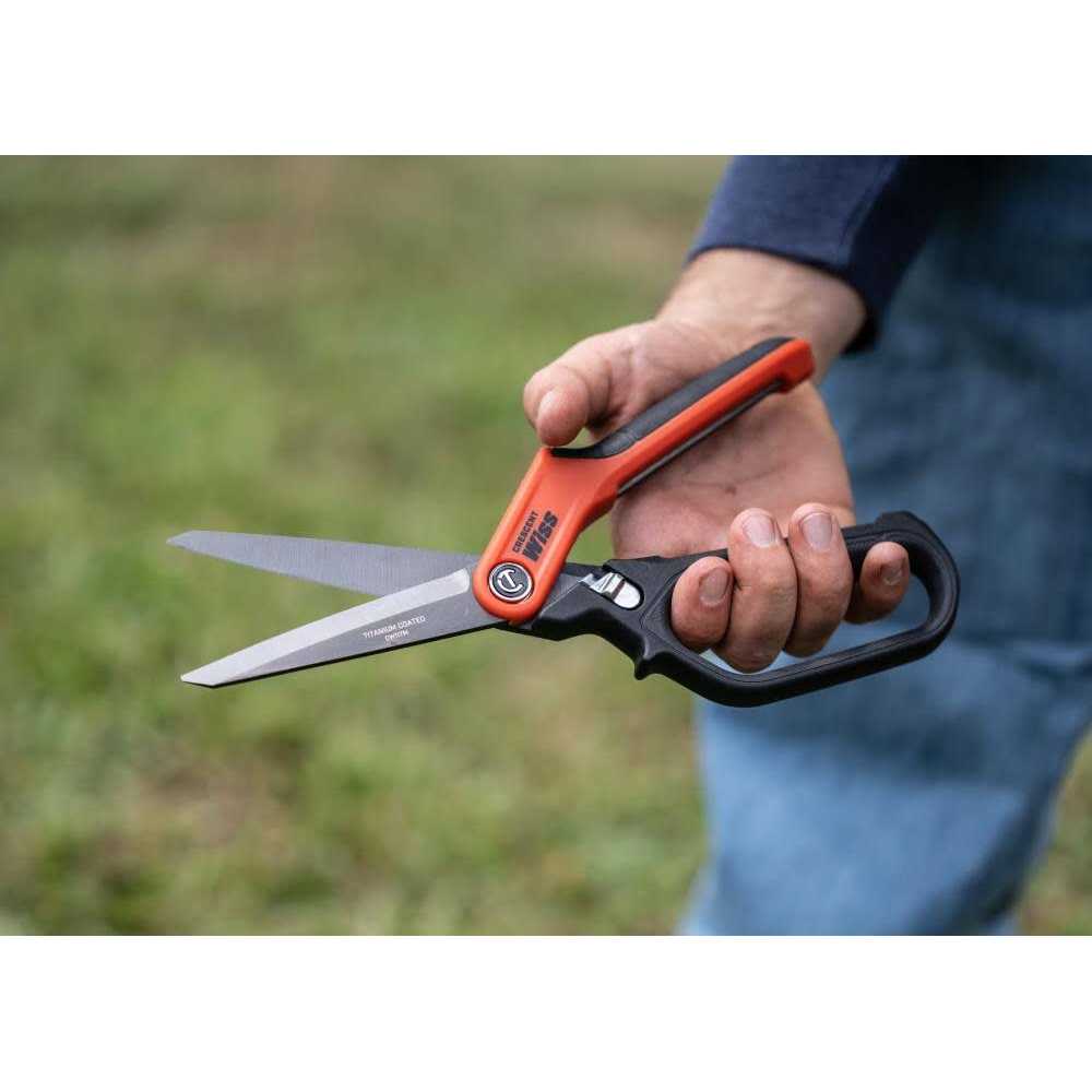 Crescent Wiss Spring-Loaded Tradesman Shears feature premium steel blades that extend through the handles for twice the strength and 10x the cutting power of standard shears. The titanium blade coating is 3x harder than steel providing increased durability and longer edge life. A serrated bottom blade grips material for better control and cleaner cuts.Fitted with soft grip TPR handles for added comfort. The spring-loaded design and optimised handle contact points improve comfort and reduce fatigue. A quick-release ergonomic latch keeps the blades in a closed position for safer storage.