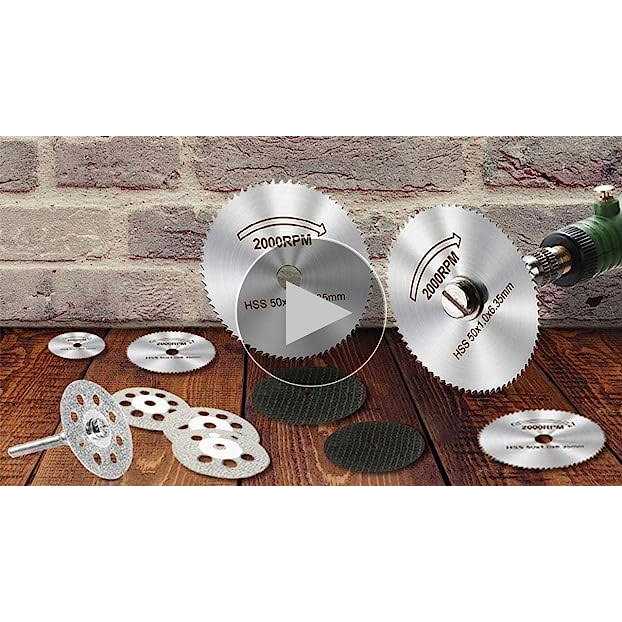 Material:HSS / Diamond / Resin HSS circular saw blades: Outer diameter 22/25/32/35/45mm Inner diameter 6.35mm Thickness 1mm Diamond cutting wheels: Outer diameter 25mm Inner diameter 3mm Resin Cutting Wheel: Outer diameter 32mm inner diameter 3mm thickness 1mm Package: 6pcs HSS circular saw blades 10pcs Resin cut off discs 10 pcs Diamond cutting wheels 6 pcs Mandrels Feature: Whether you are a professional craftsman, a robot builder, or a model building hobbyist who requires small precision tools and micro tools, rotary cutting discs tool can help. Usage: Fit for most Dremel rotary and air tools or Power die grinders. Excellent Gift for DIY Enthusiasts: There are three types of cutting discs to create a high working efficiency, perfect cutting effect, and convenient to cut, simple to use, safe and reliable. Warm Tips for Usage: 1. For your safety, wear gloves and goggles when using. 2. The screws must be fixed to the top before use to ensure that the screws are tightened. Prevent the saw blade from flying out during high-speed rotation.