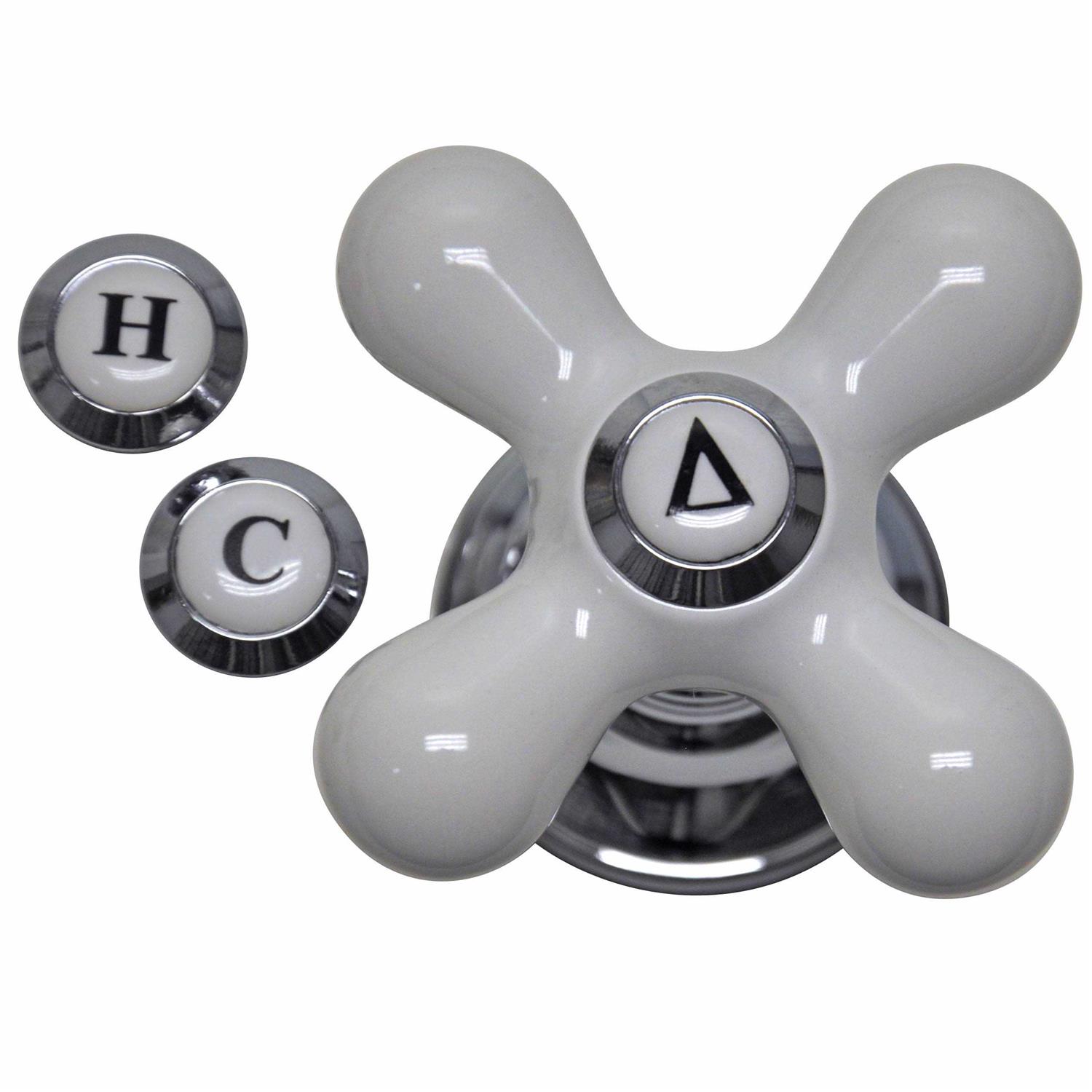 Introduce a touch of style to your faucet fixture with the Danco Cross-Arm Handle. This custom look handle features a cross-style design with a white porcelain finish and a chrome metal trim. The versatile design includes 7 adapters to fit most faucets with a 1 inch diameter at the base. It features a metal construction that provides strength and durability with an overall height of 2.25 inches. The handle includes hot, cold and arrow buttons that allow for you to choose which index button you would like to you. The complete kit includes everything you need to install this replacement handle. Buy yours today!