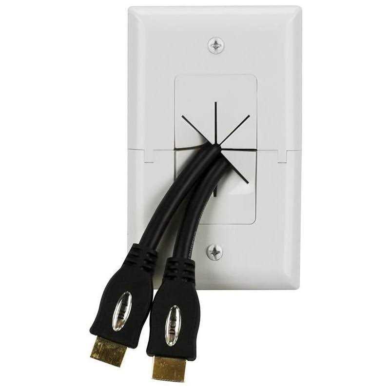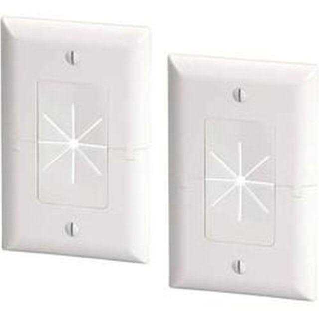 Data Comm Electronics 45-0017-WH Split Style TV Plate with Flexible Av/hdmi Cable Pass-Through – White