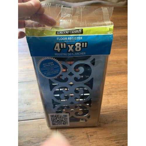This floor register from Decor Grates is exactly what you need to make sure your Hvac system keeps the temperature cool and the air quality safe. This 4×8 floor register features a plated steel front grille and plastic damper box with airflow control tab and a nickel finish. Overall height is 9.5″ and width is 5.5″. The duct dimensions max out at 8″ in height and 4″ width. Features of this floor register include: 2mm thick electroplated top and rust proof damper box.