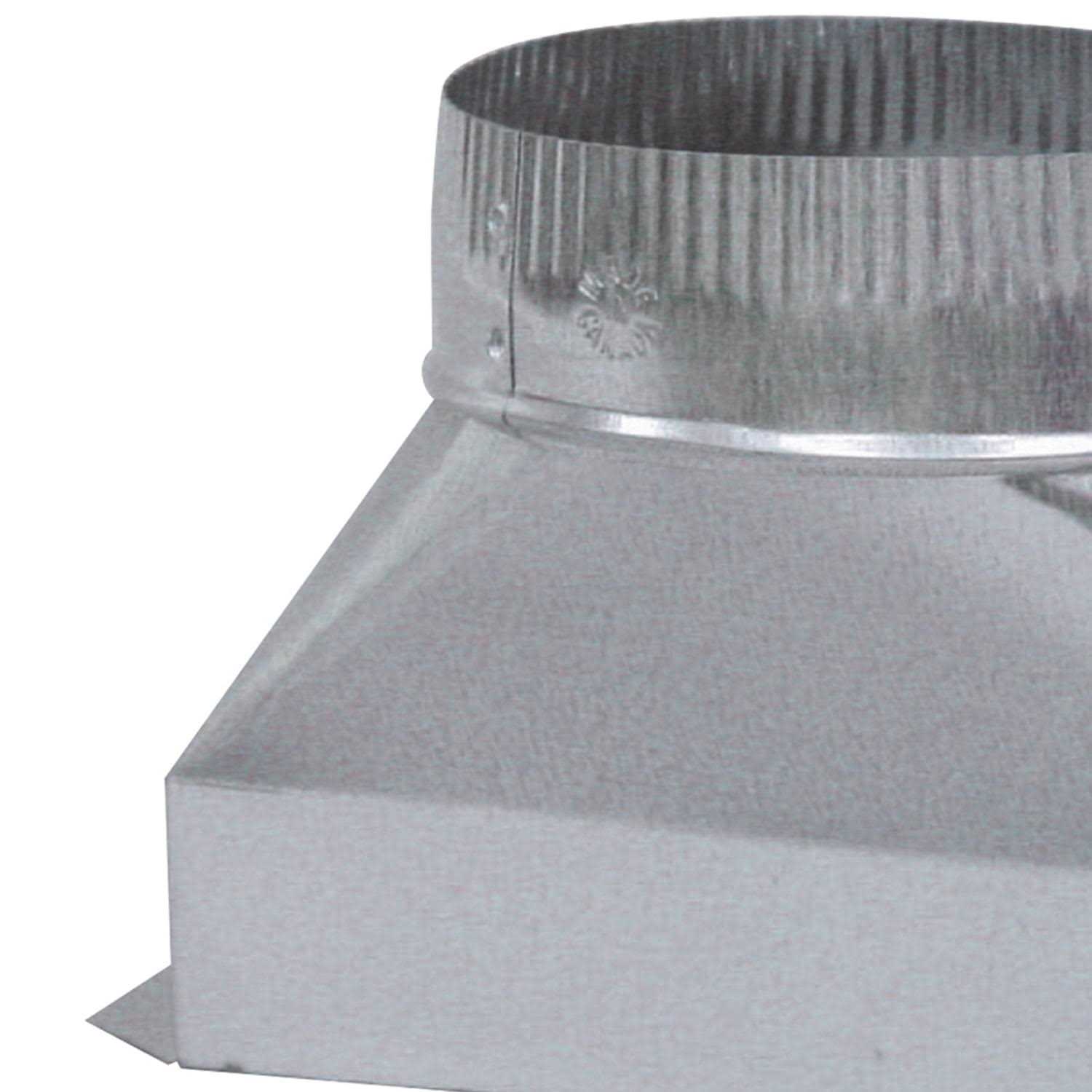 - Connects a round duct to a rectangular duct.