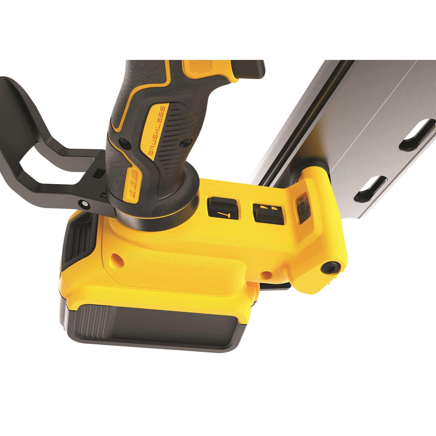 The 20V MAX* 21° Plastic Collated Cordless Framing Nailer delivers the performance demanded by pros to get the job done. The DCN21PL can drive a range of plastic collated fasteners up to 3-1/4 in. and 0.148 in. diameter into a wide range of materials. Its compact shape, well-balanced design, and easy-to-operate features make it a highly productive tool capable of getting the job done quickly and efficiently. 100% battery power means you can show up and start working without wasting time setting up a compressor or spending money on costly fuel cell replacements. Dual-speed motor optimzed to drive a wide range of fasteners for versatility. Tool-free selector switch for sequential or bump-fire modes. Tool-free depth adjustment for precise nail placement. High-strength aluminum magazine with easy-to-operate pusher latch. Stall release lever to reset driver blade in the event of a jam. Adjustable rafter hook. Easy access to the nosepiece for removing jammed nails. Dry fire lock out prevents tool from firing when nails are low. 21° magazine holds up to 49 plastic collated nails. Capable of driving 0.0148 in. diameter nail into dense lumber.