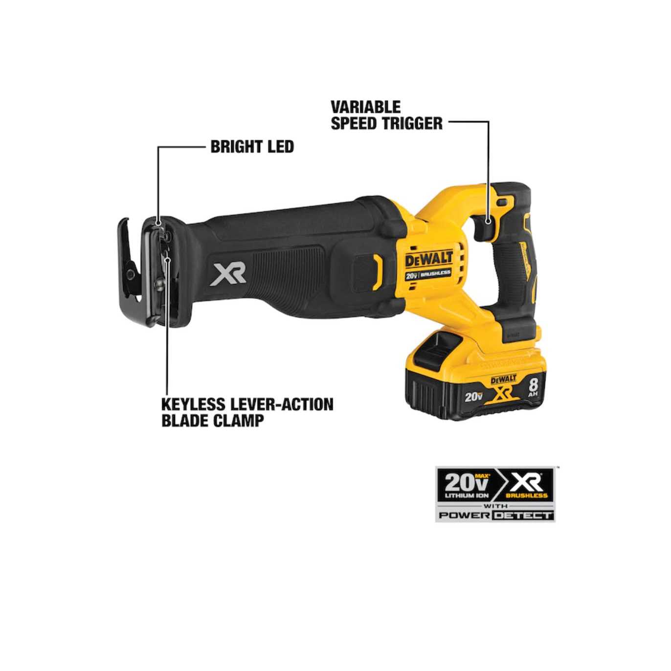 Dewalt 20V MAX XR Brushless Cordless Reciprocating Saw with POWER DETECT Tool Technology Kit DCS368B