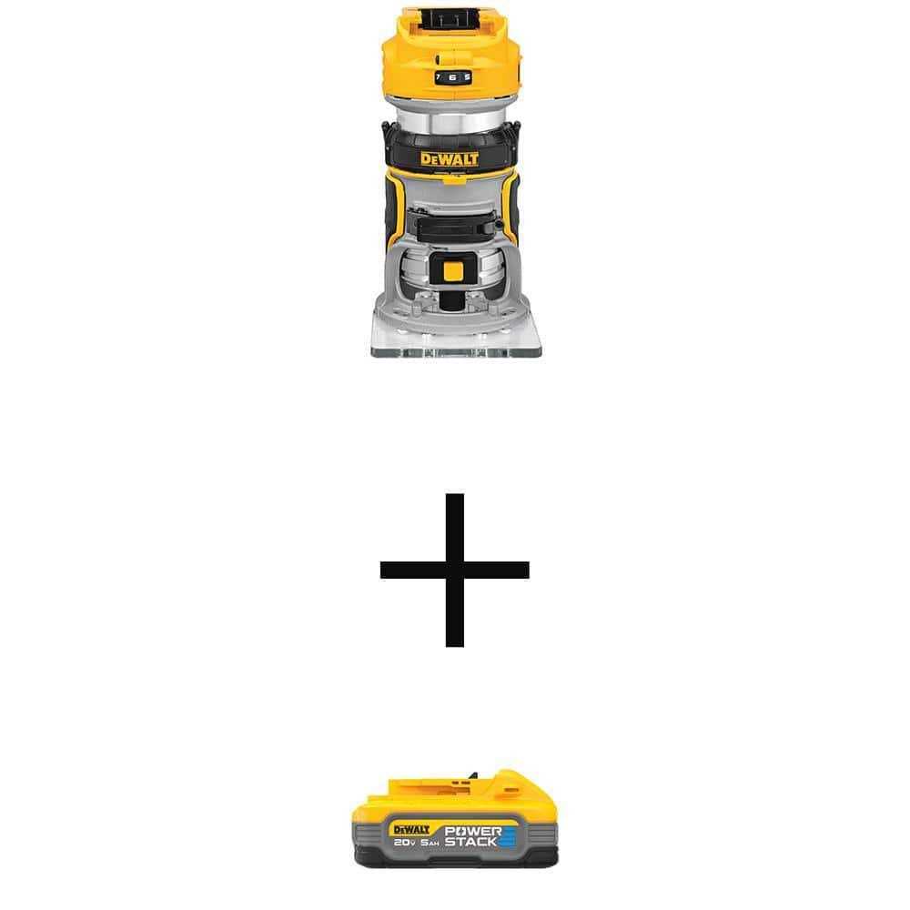 DEWALT 20V Max XR Lithium-Ion Cordless Brushless Fixed Base Compact Router with Powerstack 20V Lithium-Ion 5.0Ah Battery Pack