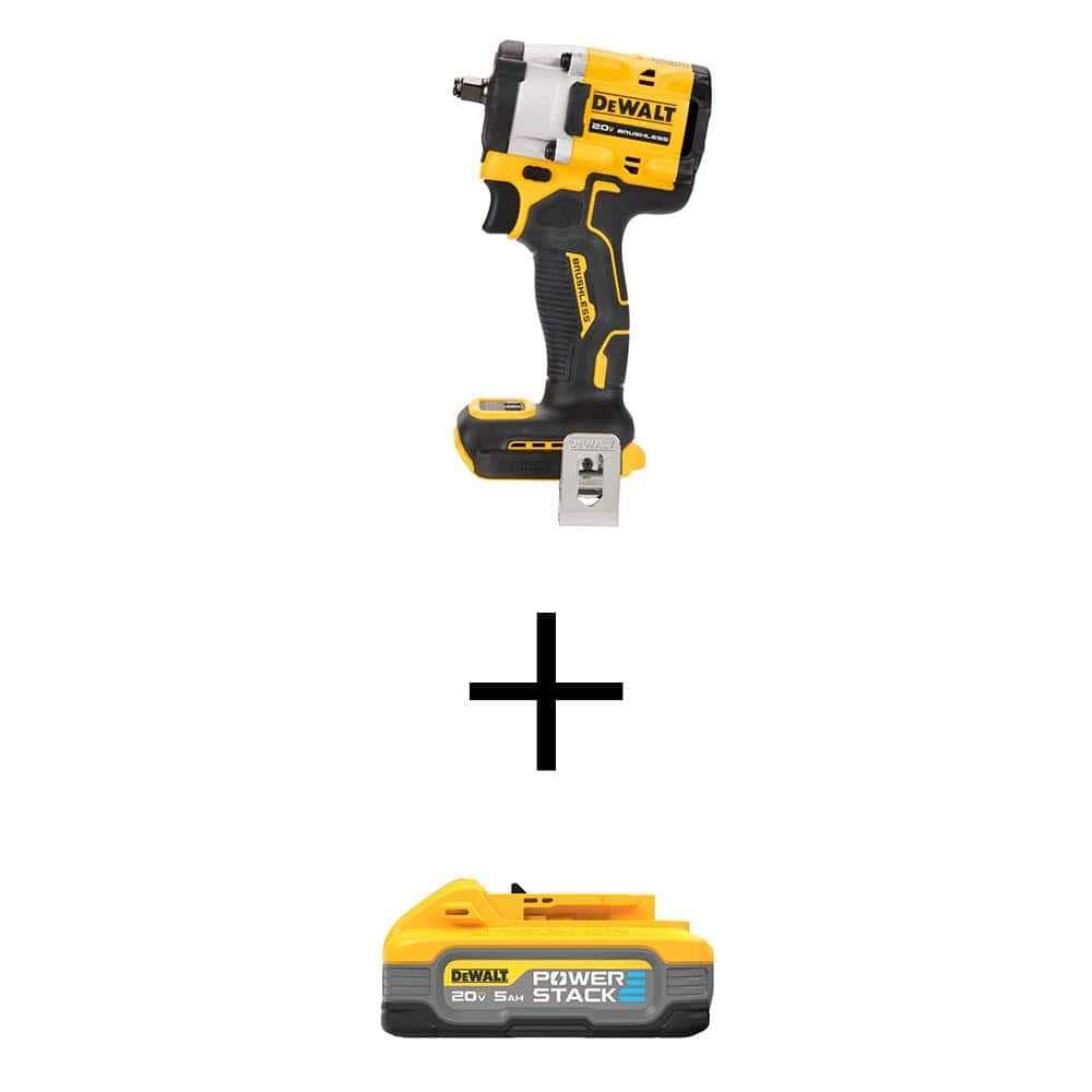 DEWALT ATOMIC 20V MAX Lithium-Ion Brushless Cordless 3/8 in. Variable Speed Impact Wrench with POWERSTACK 20V 5Ah Battery Pack