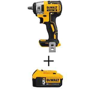 DeWalt Atomic 20V Max Lithium-Ion Brushless Cordless 3/8 in. Variable Speed Impact Wrench with Powerstack 20V 5Ah Battery Pack