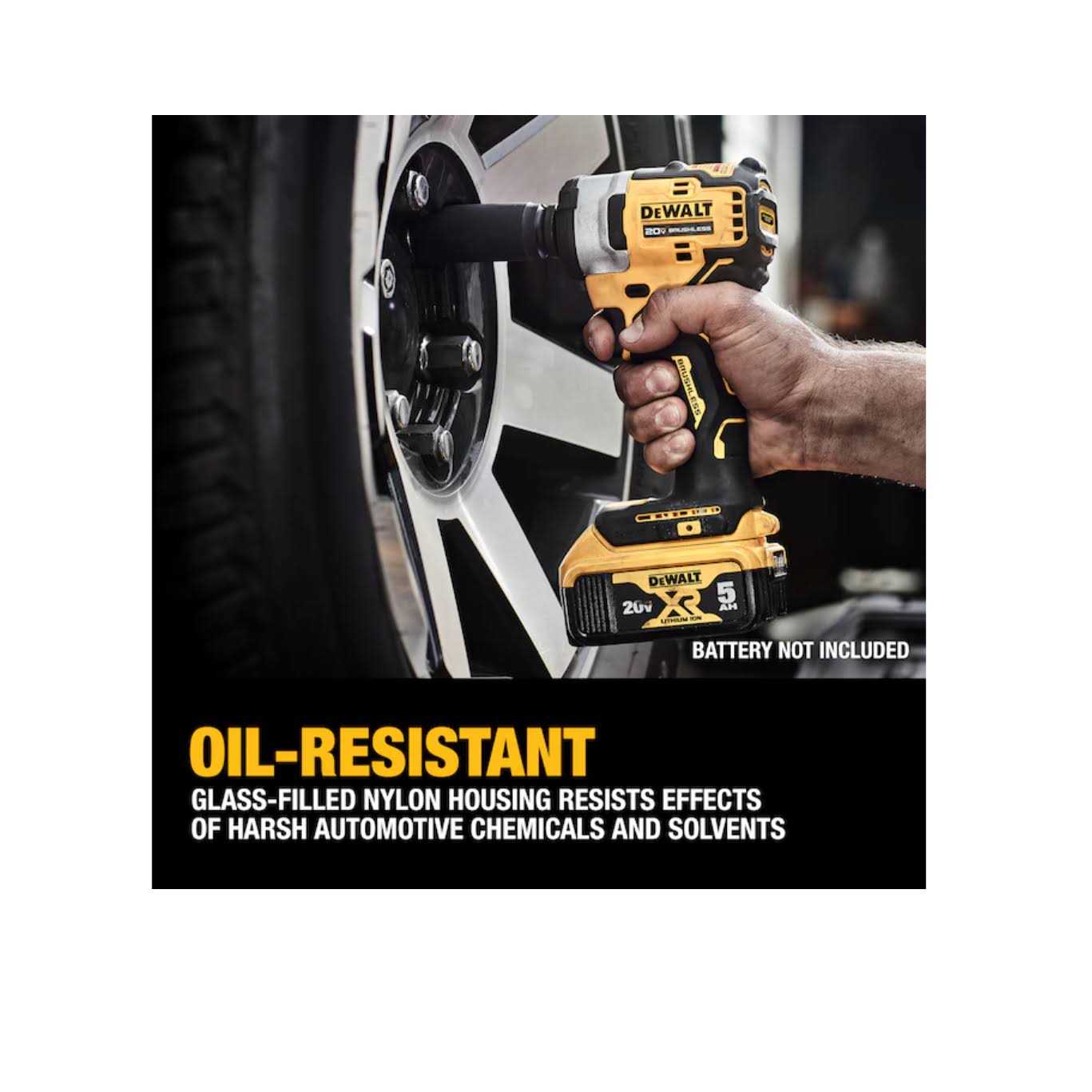 This 20V MAX* 1/2″ Cordless Impact Wrench with Hog Ring Anvil (DCF911B) was built for quick loosening and tightening of bolts, lug nuts, and other fasteners. The Impact Wrench delivers 250 ft-lbs of fastening torque and 400 ft-lbs of breakaway torque in a lightweight body suited for a range of applications in confined, difficult-to-access workspaces. Use the integrated LED in low-light spots for enhanced visibility as you work. Battery and charger not included.
