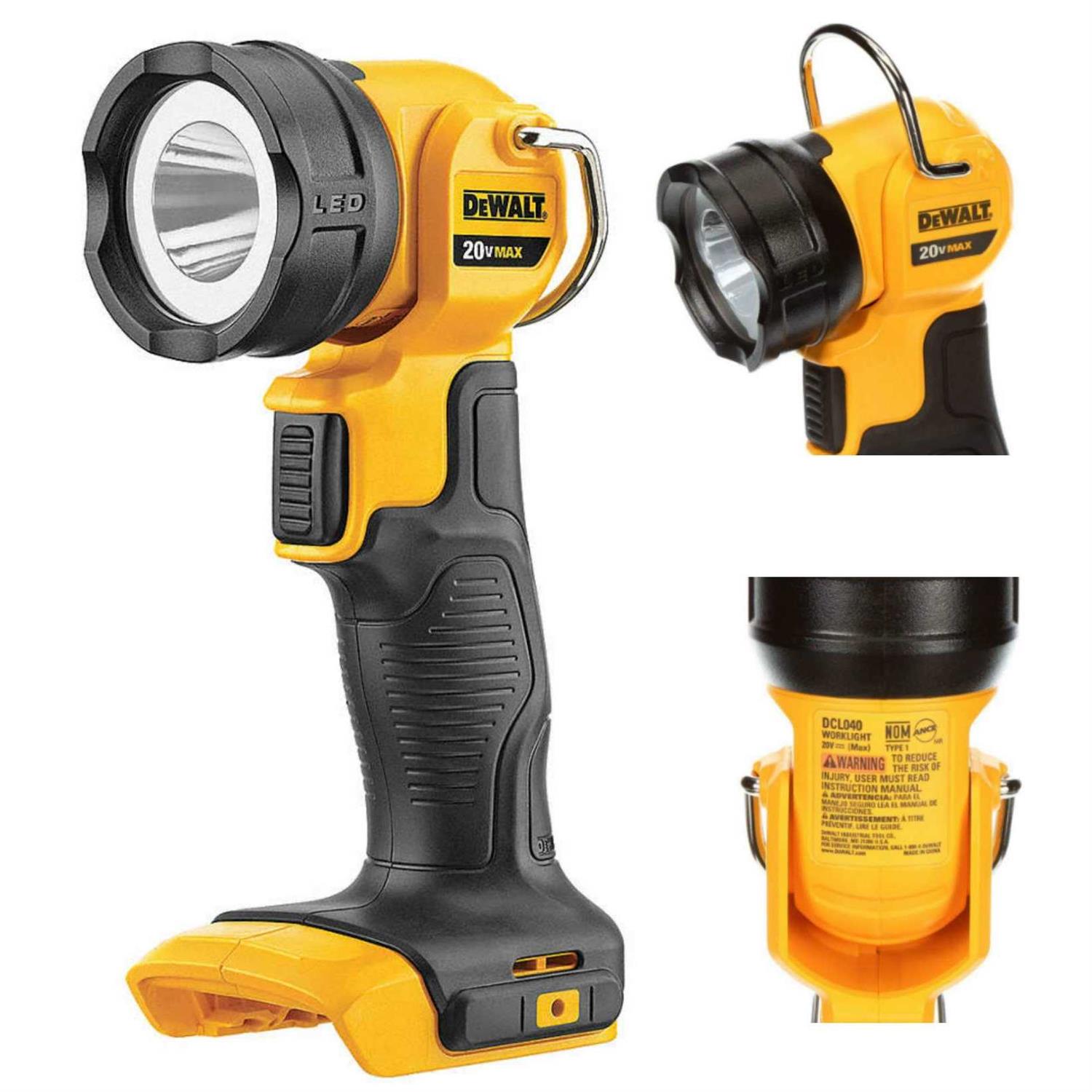 A must-have for your toolbox and for your home, the DEWALT 20-Volt Max Lithium-Ion LED Flashlight provides two zones of very bright light, giving you multiple output options. Easy to use and carry, this flashlight has pivoting functionality, is lightweight, has a ring hook for hanging and has no bulb to replace. Durably made for years of reliable use, this flashlight requires 1 lithium-ion battery. Battery and charger are sold separately. Bright LED output; 110 Lumens Integral hook for hands-free use in multiple placements Head rotates 120° Low heat output compared to xenon lights Efficient LED bulb improves run time Requires 20-Volt Max lithium-ion battery; sold separately Includes: 20-Volt Max lithium-ion LED flashlight