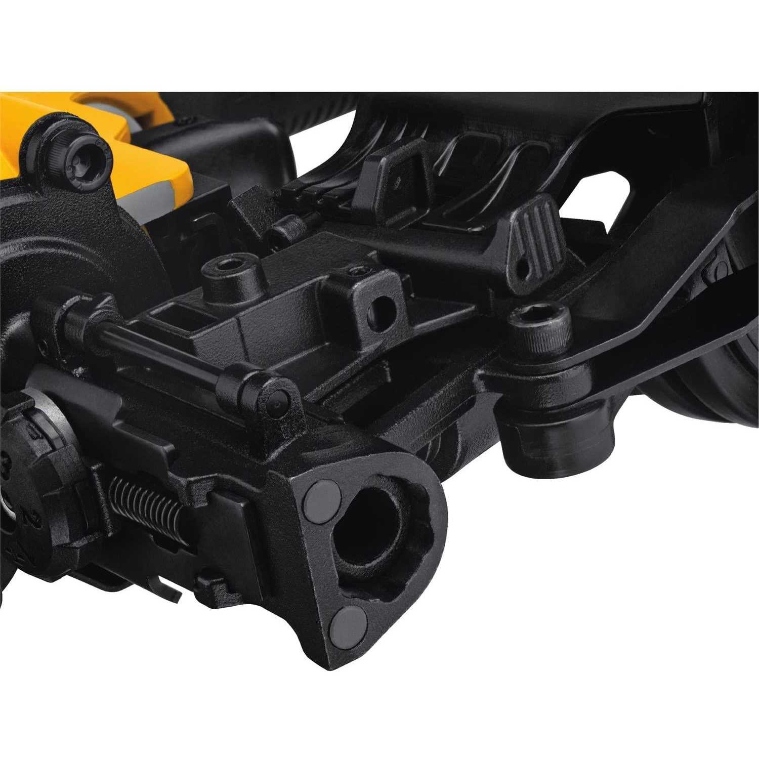 The DW45RN Roofing Nailer has a robust engine and feed system for durability and long life, and steel skid plates with rubber inserts to protect the tool and help stop it from sliding during use. It also comes with a depth adjustment wheel with numbered detents to help drive nails to the proper depth into a variety of materials. It is has an ergonomic design that is lighter than leading competitive coil roofing nailers. High speed valve technology drives at a rate of up to 10 nails per second. Ergonomic design is lighter than leading competitive coil roofing nailers. Robust engine and feed system for durability and long life. Steel skid plates with rubber inserts protect the tool and help to stop it from sliding. Depth adjust wheel with numbered detents helps drive nails to the proper depth into a variety of materials.