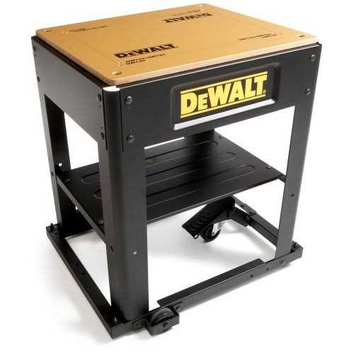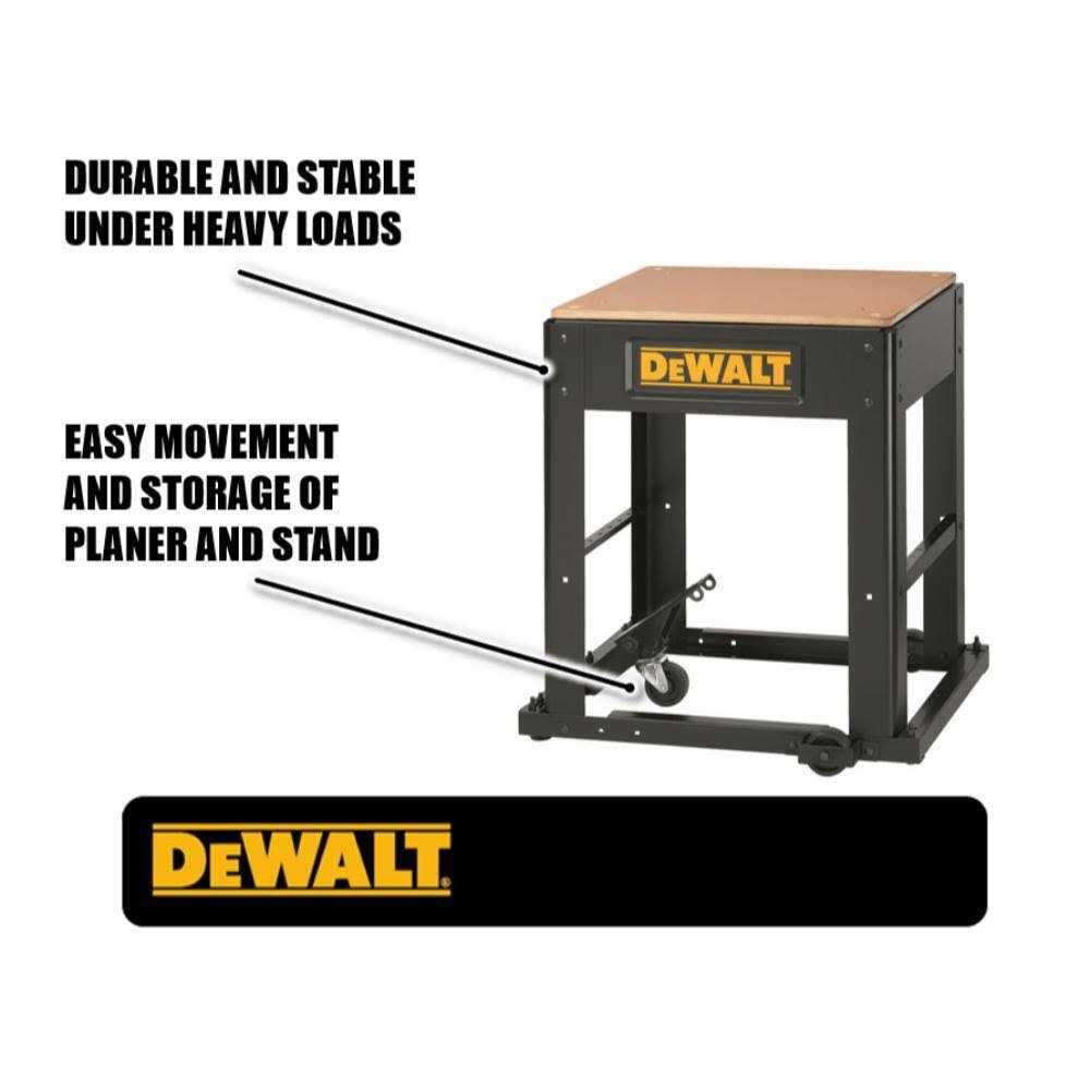 Provide dependable support for your planer while keeping it mobile using the De Walt Dw7350 Planer Stand with Integrated Base. This set-up features strong, reliable, heavy-gauge steel brackets that are capable of supporting even the bulkiest bench top planers, and a medium-density fiberboard top that is predrilled for easy installation of any De Walt planer. If your planer doesn’t line up with the existing holes, it’s easy to drill new holes to accommodate it. Perhaps the most innovative feature of this set-up is the wheel set, which can be engaged or disengaged using a foot pedal for instant portability or secure work. Width 21 in. Height 29-1/2 in. Product Weight 57 lbs.