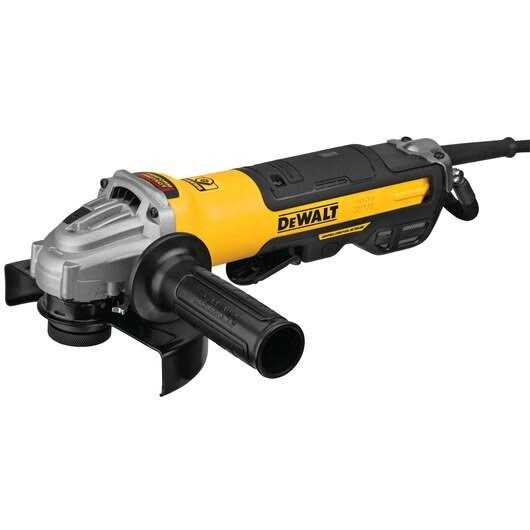 Featuring a low profile and a jam-pot gear case for durability, this is designed for use in small areas. A 7.5 Amp AC/DC motor delivers overload protection and 12,000 rpm for fast material removal. 7.5 amp AC/DC, 12,000 rpm motor designed for faster material removal and higher overload protection. One-Touch Guard allows for a single action to adjust the guard. No buttons or levers, just turn the guard to position it. Hex wrench replaces spanner wrench – hex wrench is found in most tool boxes if lost. Low profile, jam-pot gear case increases durability and allows tool to fit into tight spaces. Quick-Change wheel release allows tool-free wheel removal without the need for a wrench. 2-position removable side handle provides increased comfort and control. Slim, ergonomic body design provides increased comfort in extended use applications. 5/8″-11 spindle thread accepts a wide range of 4-1/2″ accessories. This product runs off of AC/DC power.