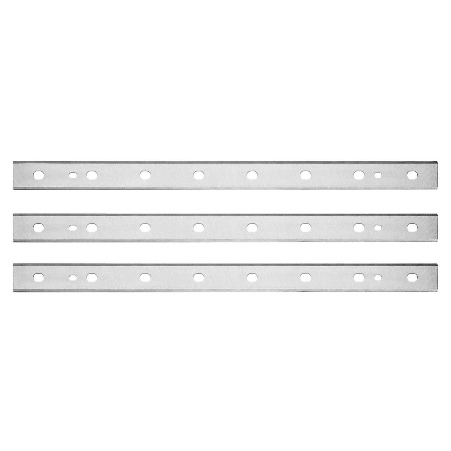 M2 laminated tool steel stays sharper and lasts longer than conventional knife materials Machined locator pins make alignment of new knives fast and easy Crafted from M2 laminated steel for sharper edges and better durability Designed for use with the DW734 12-1/2-inch thickness planer 12-1/2″ The DeWalt DW7342 kit includes disposable, reversible, replacement knives for use with the DW734, a heavy-duty 12-1/2-inch thickness planer with a three-knife cutter-head. Crafted from durable M2 laminated steel, these dependable knives stay sharper and last longer than conventional knives, making replacement less frequent and saving you money. Special, machined locator pins mean that it’s simple to fit these knives onto the cutter-head of the DW734 for safe, accurate performance down the road.