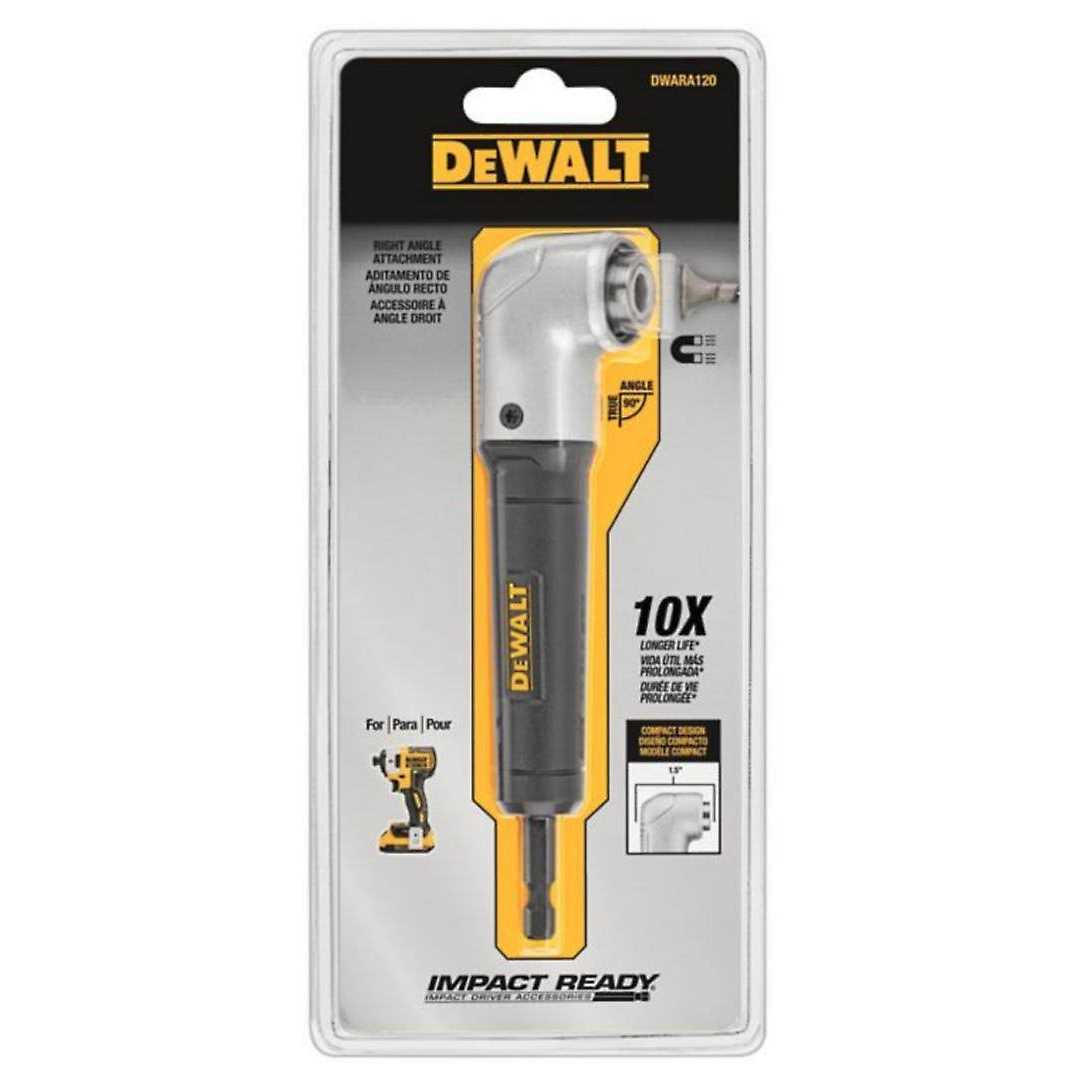 Details: DEWALT IMPACT READY Right Angle Attachment provides users with best-in-class performance and accessibility for close-quarter fastening and drilling applications, due to its compact front-to-back footprint and metal-gear case design. Robust magnetism is projected through the unit to give users fastener retention, enhancing the overall user experience and functionality. Best-in-Class Performance and Accessibility, with 1.5-in front-to-back design Magnetism for fastener retention Engineered for use in impact drivers, allowing users to drill or drive Applications include wood and metal