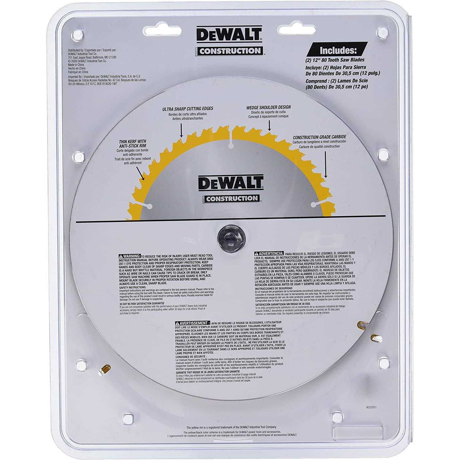 Built to cut quickly and easily, this DeWalt 12″ Series 20 80T Circular Saw Blade (DW3128P5D80I) is the ideal blade for cutting applications in softwood, hardwood, chip board or plywood using a table saw or miter saw. Its thin kerf facilitates fast cutting action with minimal material waste.