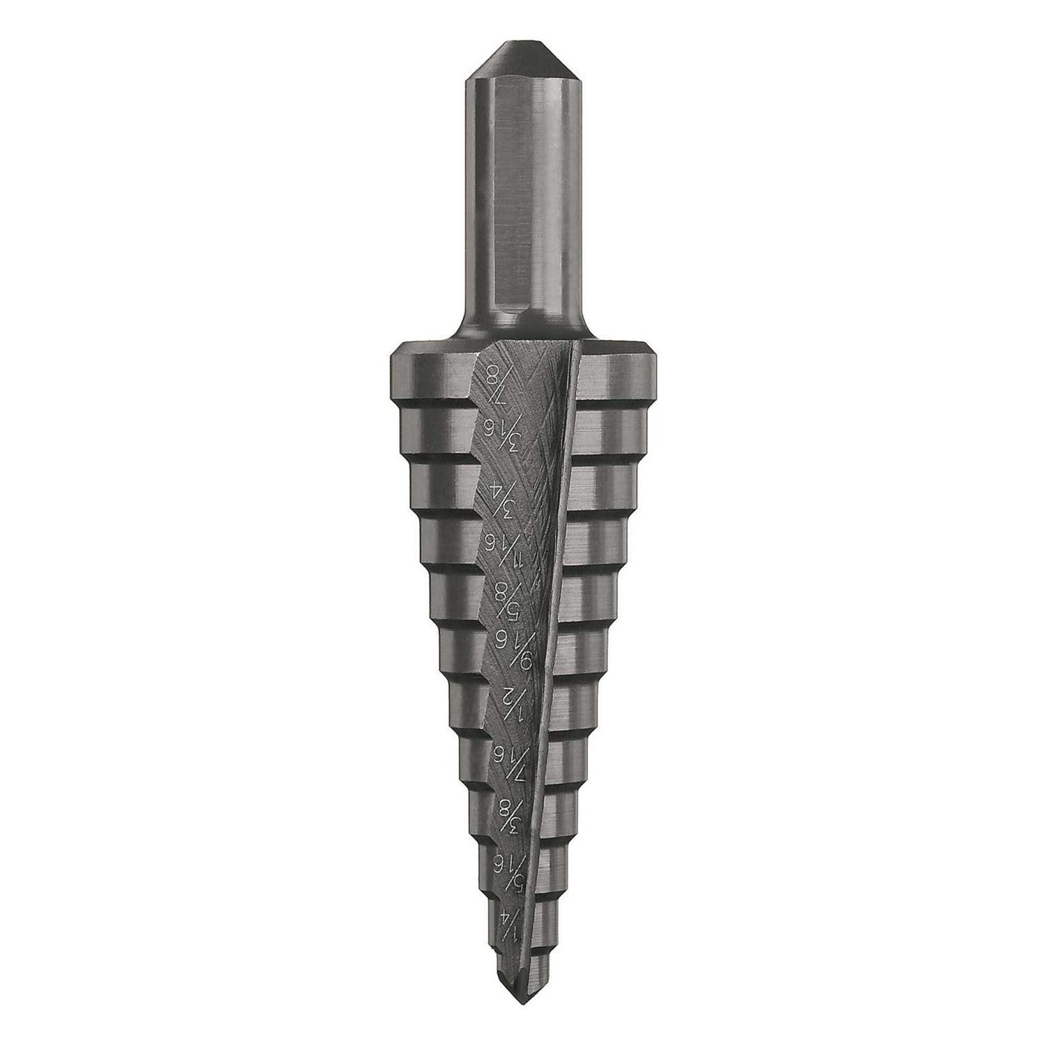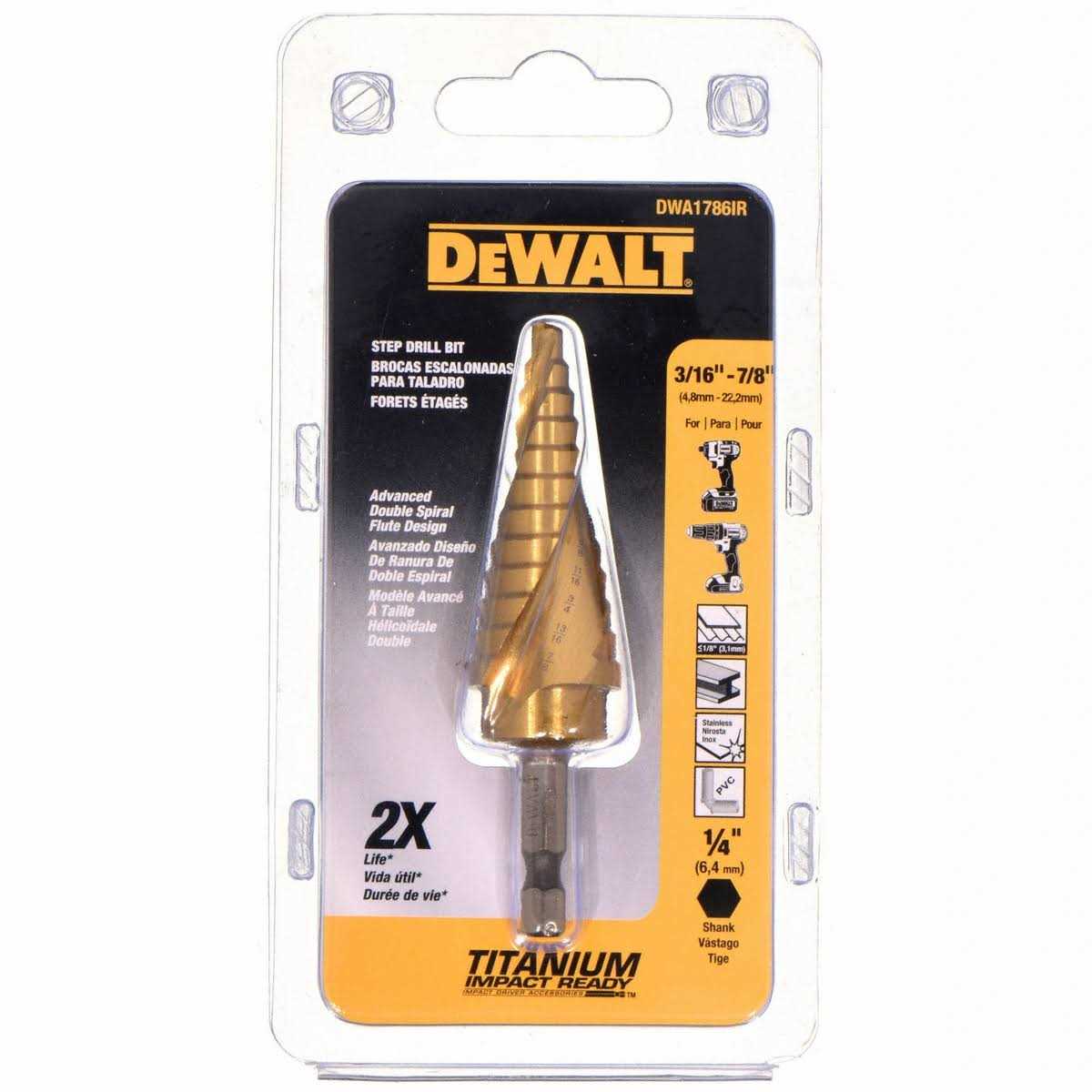 The DEWALT DWA1786IR 3/16-Inch-7/8-Inch impact ready step drill bit has a split point tip that increases speed. Its laser engraved numbers increase step visibility and while optimized for impact driver usage, this bit does work with rotary drills.