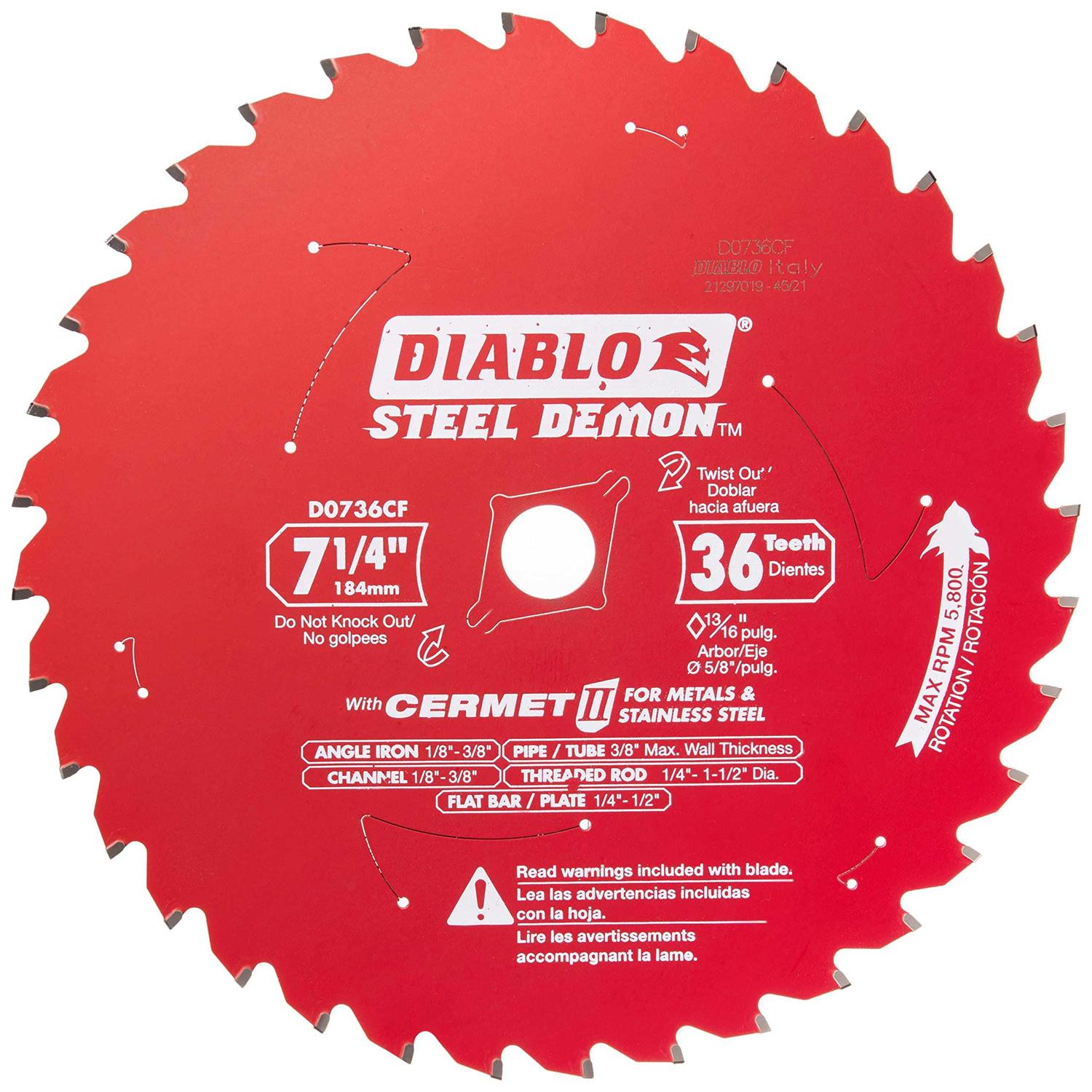 Diablo D0736CF 7-1/4 in. x 36‐Tooth Steel Demon Cermet II Saw Blade for Metal & Stainless Steels