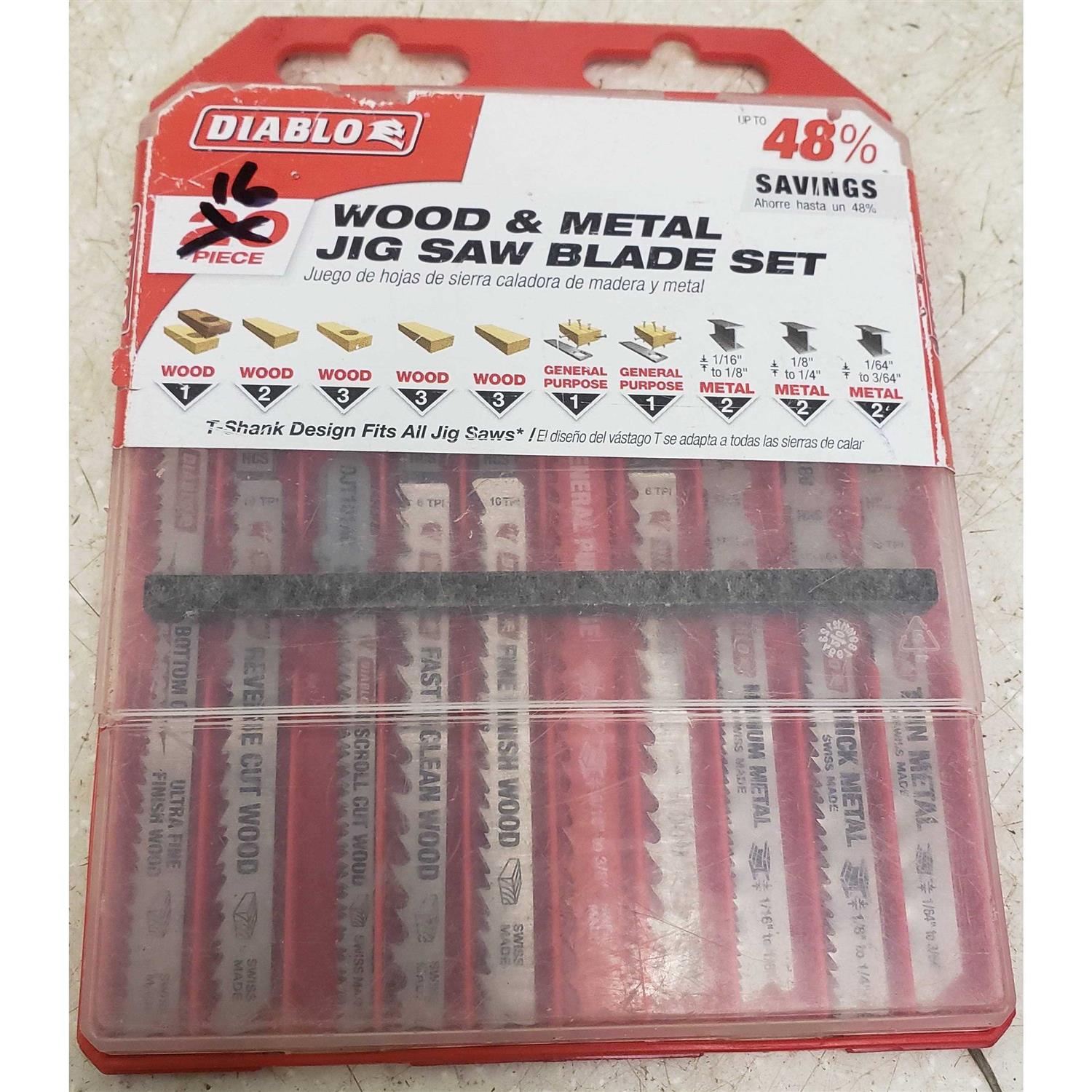 Diablo DJT20S 20-Piece T-Shank Jig Saw Blade Set for Wood & Metal