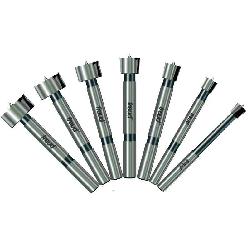 This set contains the seven smallest sizes of Diablo’s Forstner bits. From the 1/4 In. diameter bit to the 1 In. diameter bit these bits will drill flat bottom holes pocket holes or overlapping holes.