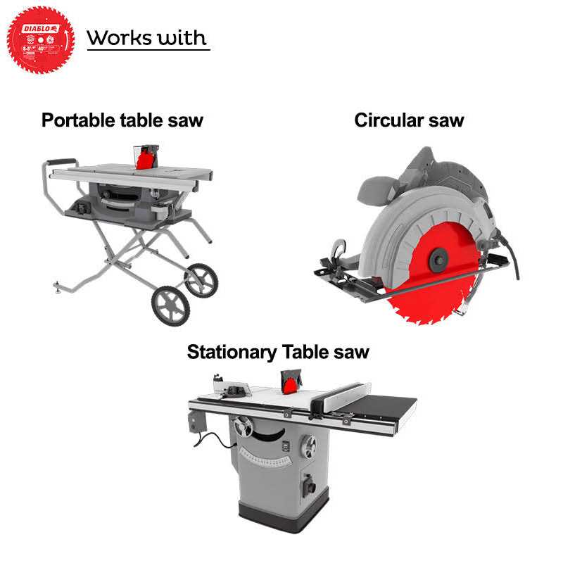 Diablo’s finishing blade is ideal for smooth finish crosscuts in hardwood, softwood or plywood. These blades are the perfect choice when seeking high quality rips and crosscuts using a portable saw. The combination of Diablos application specific TiCo Hi-Density carbide teeth and a super thin-kerf blade deliver smooth cuts, increased cutting speed and longer life. A great choice for jobsite finish cuts in 1X, decking, fencing, fascia and plywood. Specially formulated Diablo TiCo Carbide withstands impact, reduces wear and lasts longer in fine finish applications. Perma-SHIELD non-stick coating protects the blade against heat, gumming and corrosion. Advanced Laser Cut Stabilizer Vents traps noise and vibration for maximum stability, keeping the blade cool with accurate cuts in wood. Super Thin Kerf Design provides less resistance and heat build-up for ease of cut, accuracy and longer cutting life. Tri-Metal Hock Resistant Brazing provides a high performance shock absorber behind every tooth. Laser Cut Arbor reduces vibration and premature wear for accurate blade rotation on cordless and corded saws.