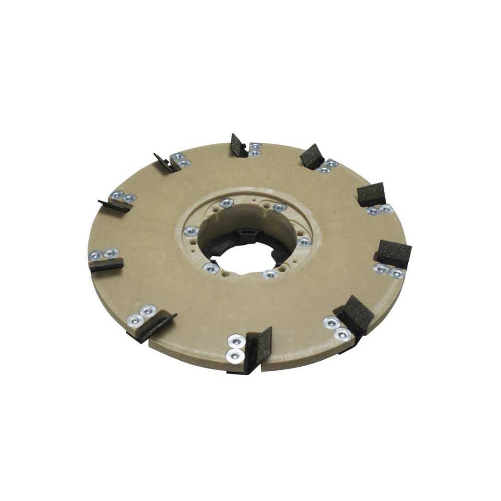 The safe way to remove mastic, glue, adhesive and coatings. The coating removal tool can be used with most floor buffer or auto-scrubber. It is designed to fit a wide variety of rotary floor machines. No need for heavy, expensive and hard-to-use grinding equipment that often requires 480 3-phase power Rigid, exposed 25 grit diamond cutting surface creates a level floor with normal use. Includes 10 replaceable diamond blades. 10 times faster than manually scraping, limited surface contact during use The Diamabrush By Malish coating removal tool is the safe way to remove mastic, glue, adhesive and coatings. The Diamabrush By Malish coating removal tool makes removing Stubborn coatings like mastic, carpet and tile adhesive, thin-set and thin-mil easy and safe. With no dangerous and volatile chemicals or scraping required, the coating removal tool utilizes patented diamond-coated blades to enhance efficiency by preventing caramelizing and clogging of the tool. Mountable to most standard floor buffers or auto-scrubbers, the Diamabrush By Malish coating removal tool is the ideal solution for even the most difficult floor coating problem. Dust can be eliminated by using with water. The coating removal tool is designed with replaceable blades, which enable users to order a replacement kit and easily change used or worn blades minimizing downtime. Simply loosen two screws and replace.