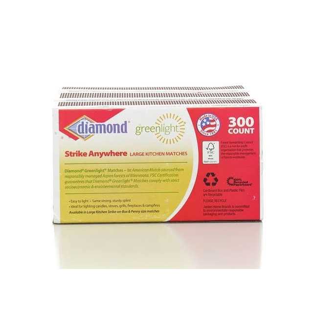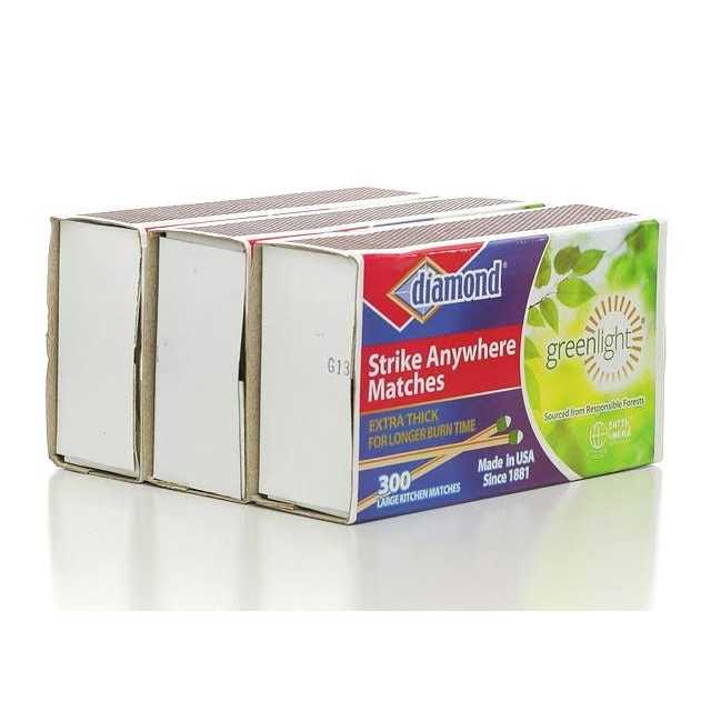 - Diamond GreenLightTM Strike On Box Kitchen Matches – 300 Matches per Pack x 3 = 900 Match (Strike anywhere).