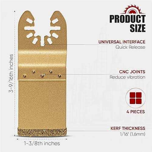 Abtoff Diamond Oscillating Saw Blades – Grout Removal, Carbide Blade, Universal Fit, Quick Release – 4 Pack with Case
