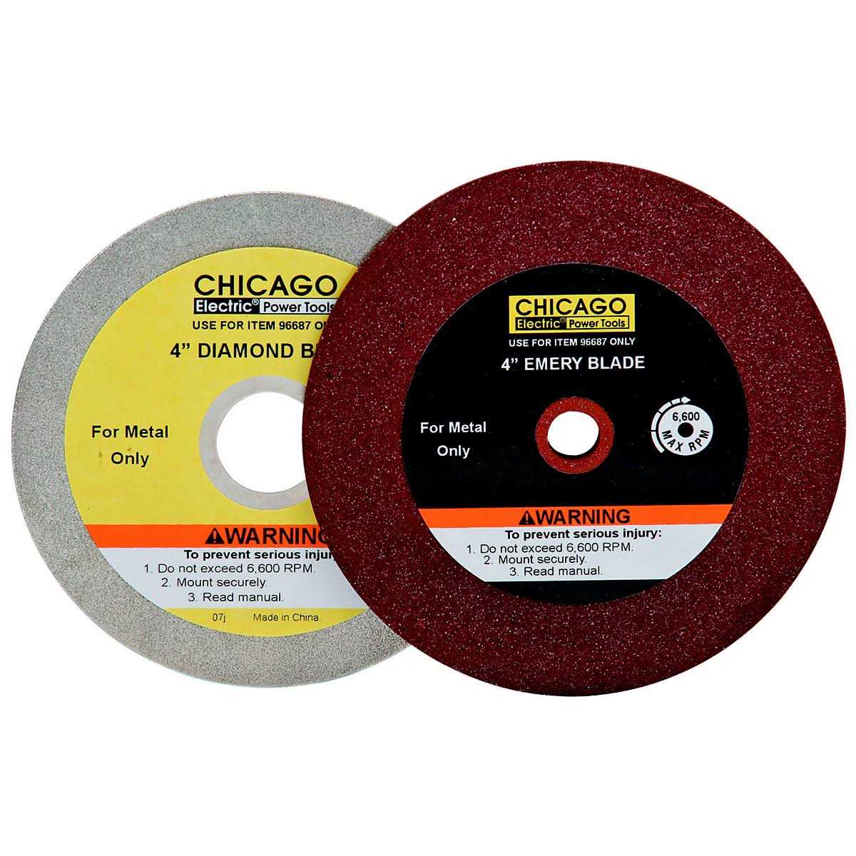 - Includes two wheels: one 180 grit diamond wheel and one 100 grit emery wheel