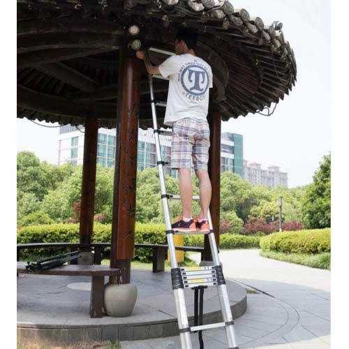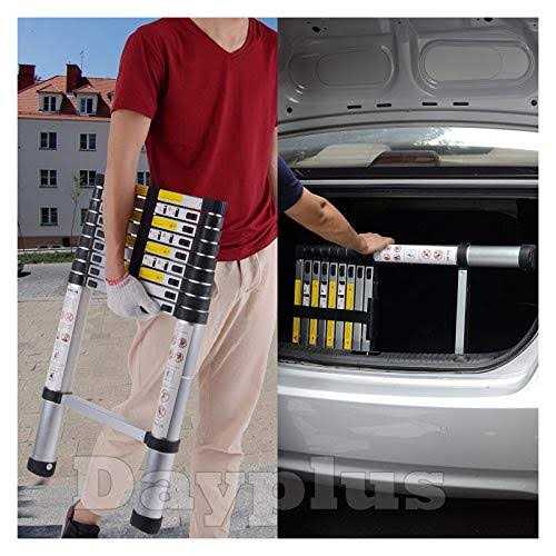 Safe & Reliable: equipped with anti-slip rubber feet and rubber sleeve on every step to give maximum safety, locking clip in every section to enhance the overall reliability while using. Wide Applications: Extends to 10.5 feet (3.2M). Ideal for indoor/outdoor works, such as roof works, cleaning windows, changing bulbs, interior decoration, garden works, etc. High Quality: Made of corrosion resistance aluminum alloy, light weight and durable. Could support up to 330 lbs.