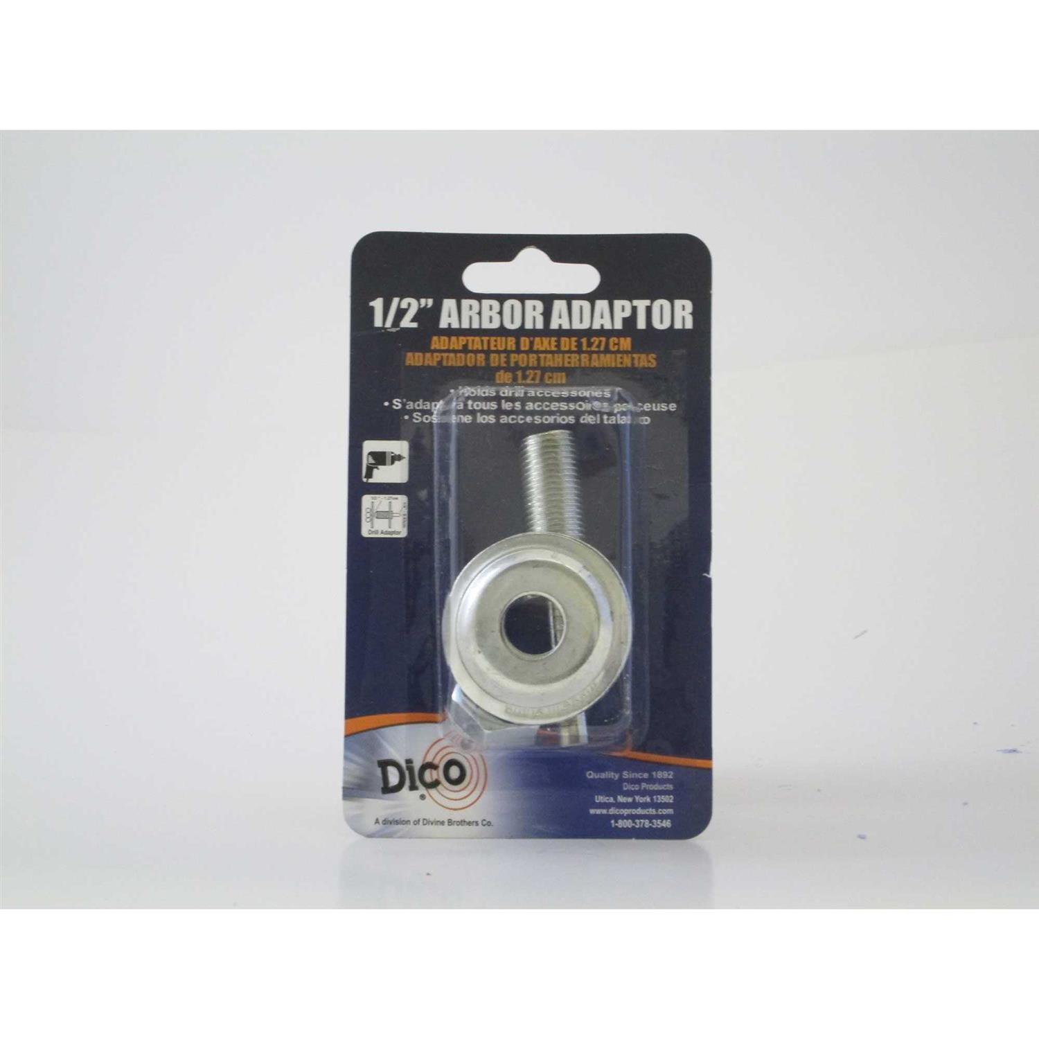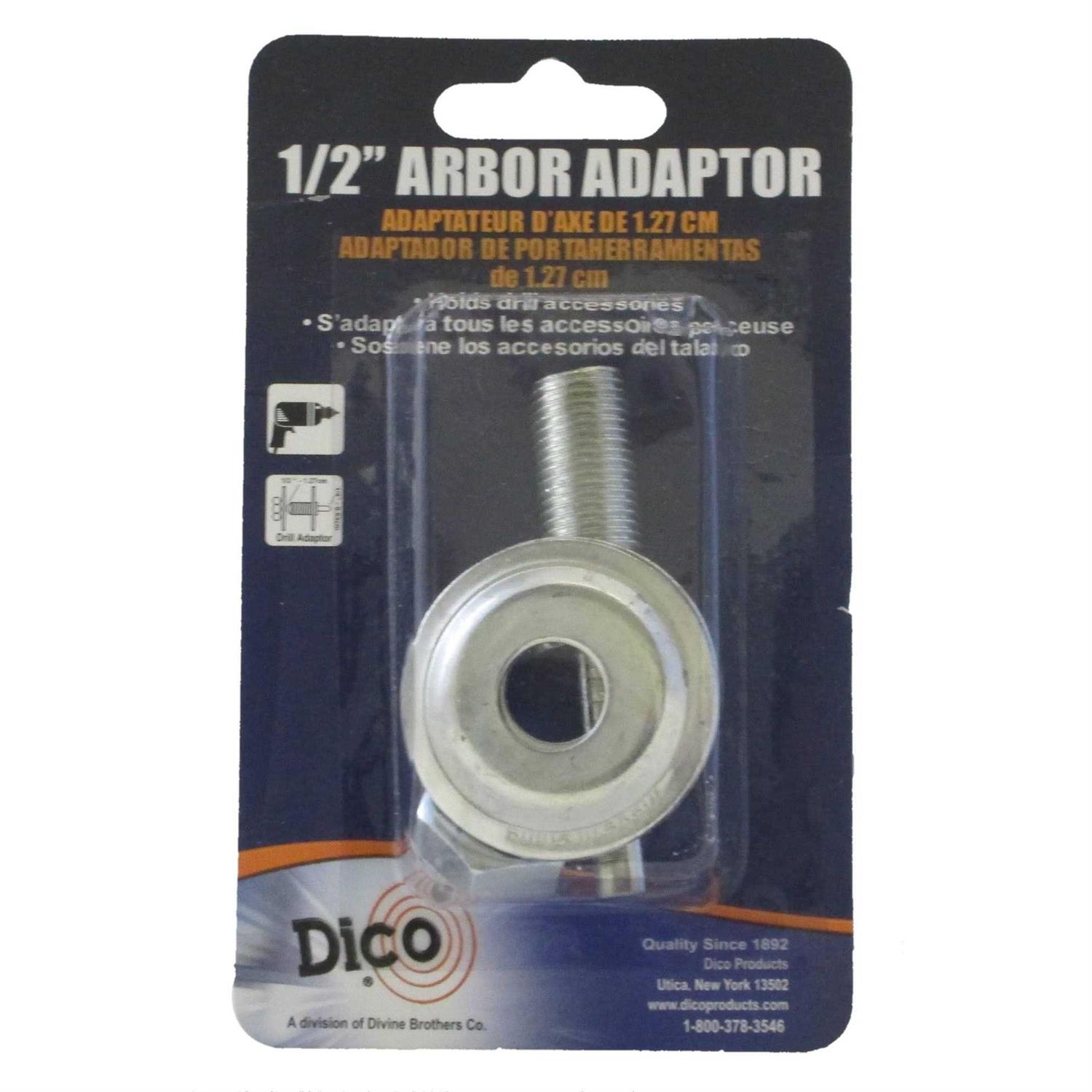 Adapts any drill for use with Dico buffing wheels or any power tool accessory with a 1/2″ arbor hole. Solid steel construction. Includes two washers & hex nut for securing accessories. ! /2″ male thread x 1/4″ round mandrel fits drills & die grinders.