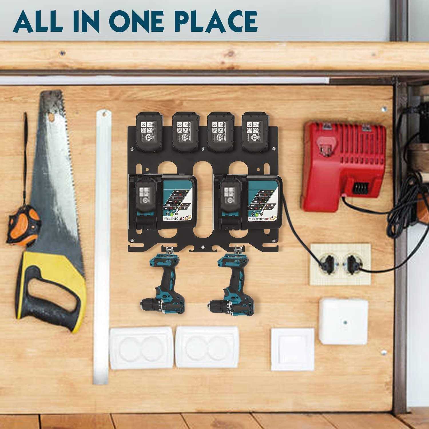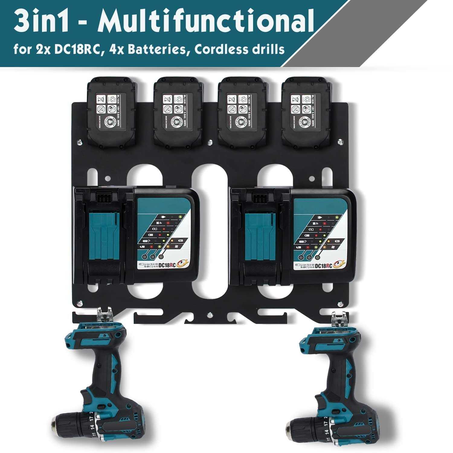 DITKOK 3 in 1 Wall Mount Shelf for Makita Battery Holder for Makita DC18RC DC18RD Charger
