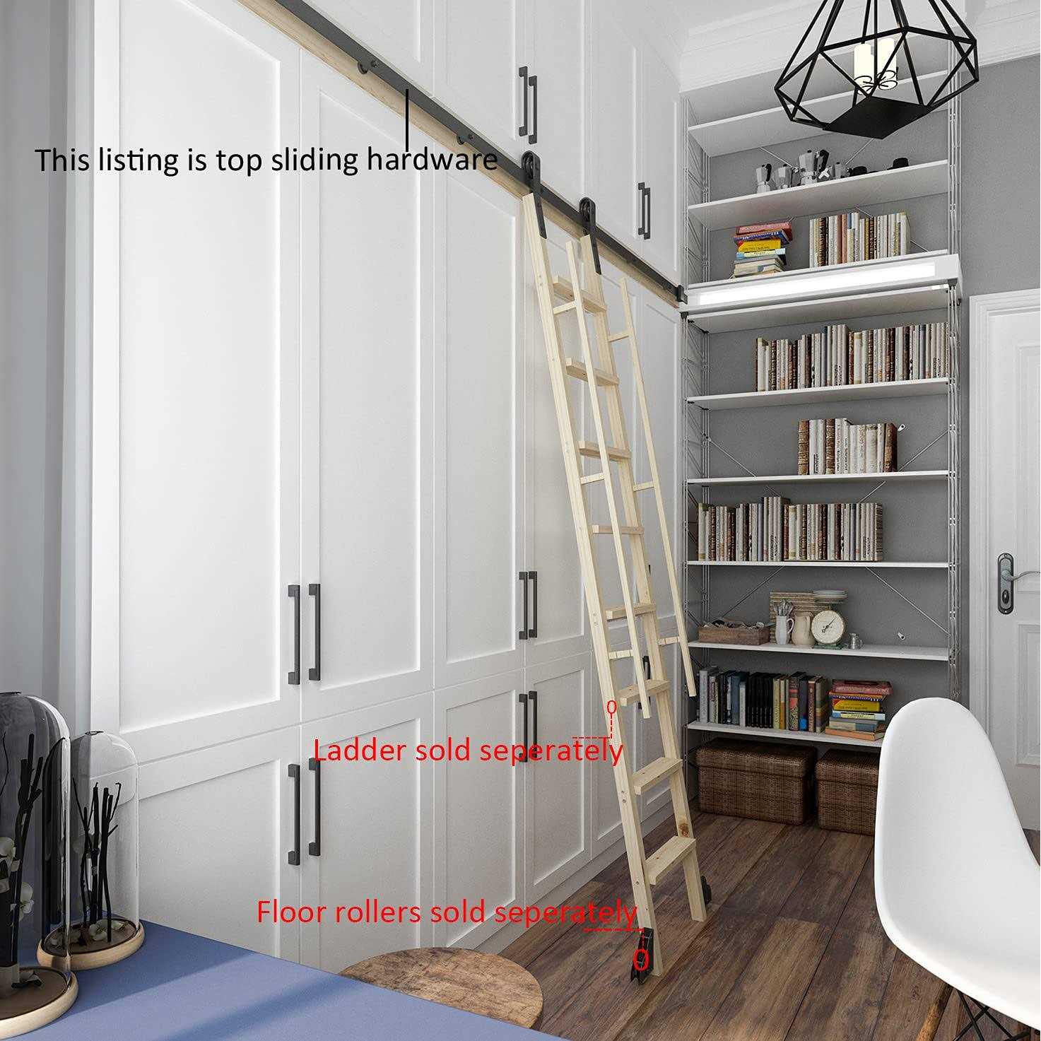 DIYHD Sliding Track Home Office Library, 10ft Ladder Kit, Black