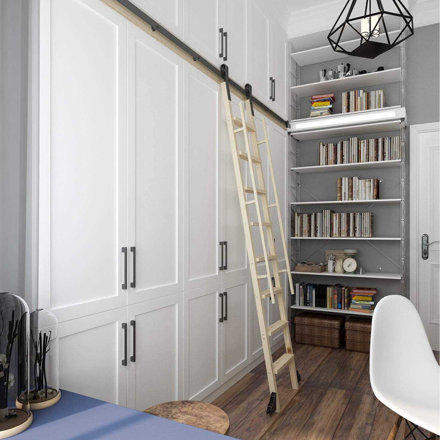 DIYHD Black Rustic Sliding Library Hardware, 16ft Ladder Kit