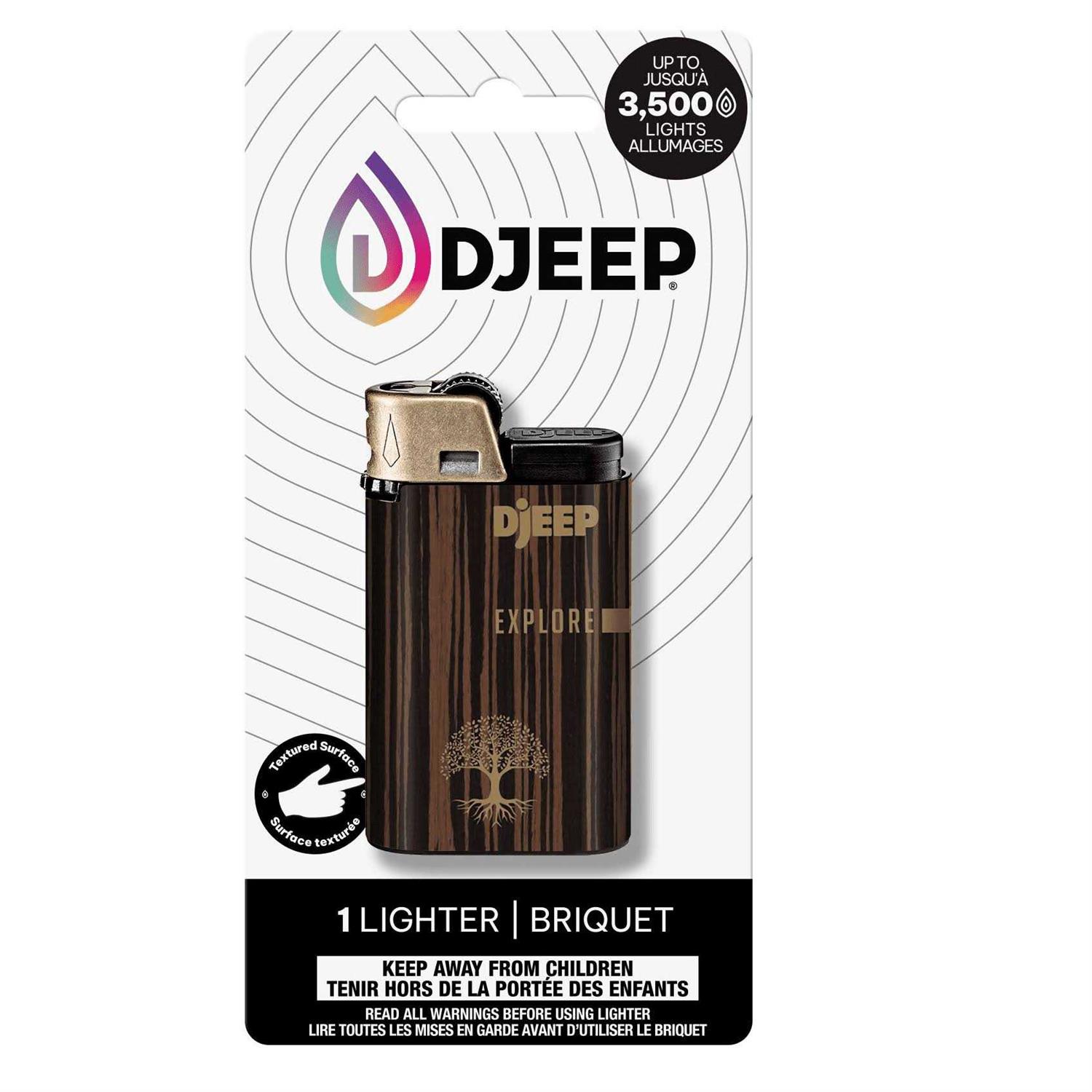 Spark up incredible moments with this DJEEP BOLD Collection 1-count pack of pocket lighters featuring sleek, wooden and metallic designs. Thanks to their three-tank fuel system, DJEEP lighters have a long life and last up to 3,500 lights. The pure isobutane fuel inside each pocket lighter makes a steady flame that you can adjust with the setting ring. This helps improve your lighter’s fuel economy and allows you to get the right flame height every time. Every DJEEP disposable lighter has a durable reservoir made of high-quality mechanical resin to help make the tank resistant to pressure. The unique lighter design has a rectangular tank and a large thumb pusher, so its easier to grip and light for added confidence and comfort especially for adults with larger hands. Plus, DJEEP lighters feature a child-resistant safety guard that is compliant with CPSP requirements. Looking for a go-to lighter or a fancy lighter? DJEEP disposable lighters have you covered with stylish collections of dependable, cool lighters for men and women. Find a lighter that matches your vibe with DJEEP Unique Lighters. DJEEP lighters have it all quality, design and style.