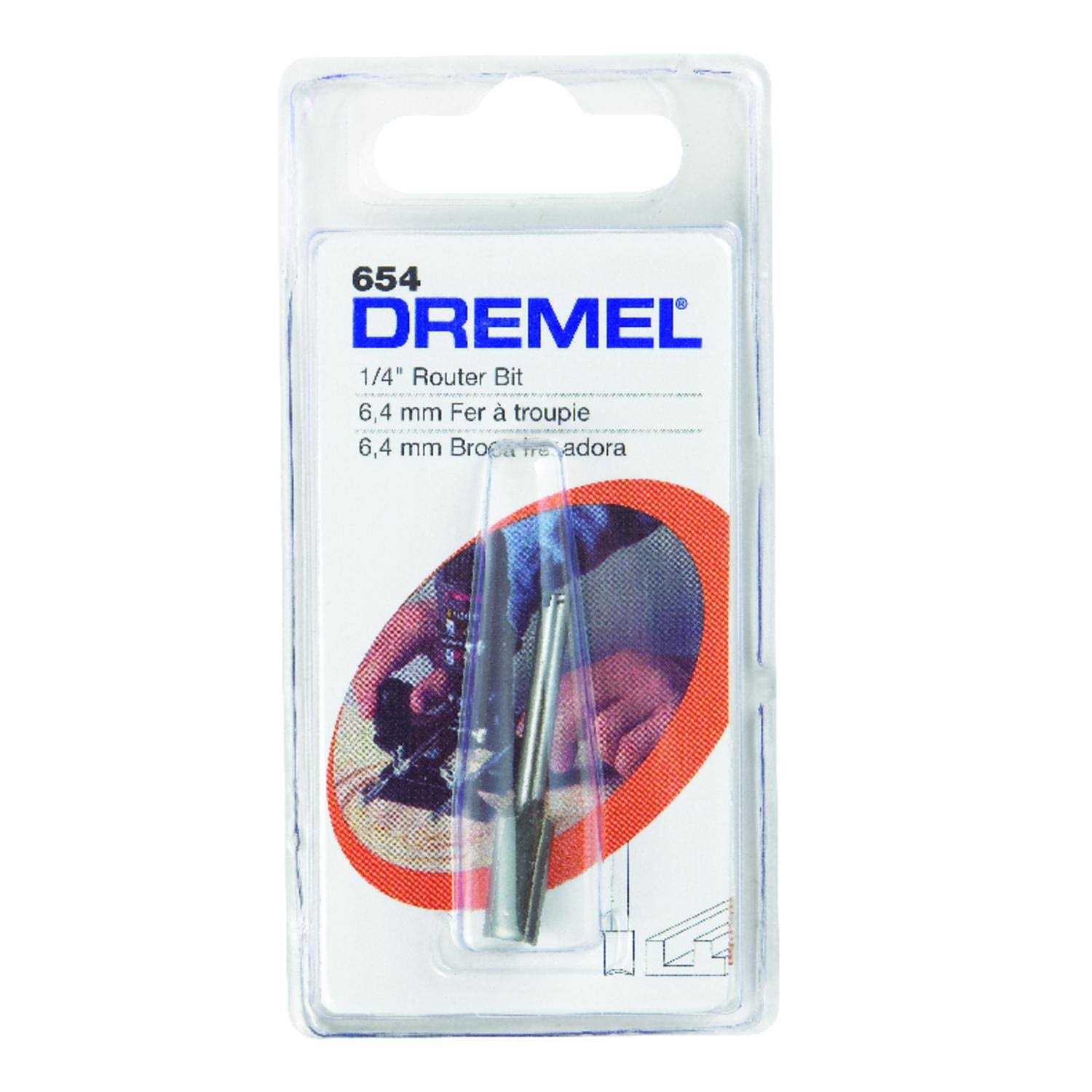 Dremel 654 1/4″ Straight Router BitFor routing, inlaying and mortising in wood and other soft materials. Use with Dremel #230 and #330 Router Attachments and #231 Shaper/Router Table. Made of high-speed steel. – Ideal for routing, inlaying and mortising in wood and other soft materials – Use in wood and other soft materials – Use with Dremel model 230 and 330 router attachment – Also can be used with model 335 plunge router attachmentUser Tips – For best results, insert the accessory bit all the way into the tool and then back it out slightly before tightening down. This provides plenty of shank for the collet or chuck to hold onto the bit. – Secure objects to a stable surface while working. – If chattering occurs, increase speed.