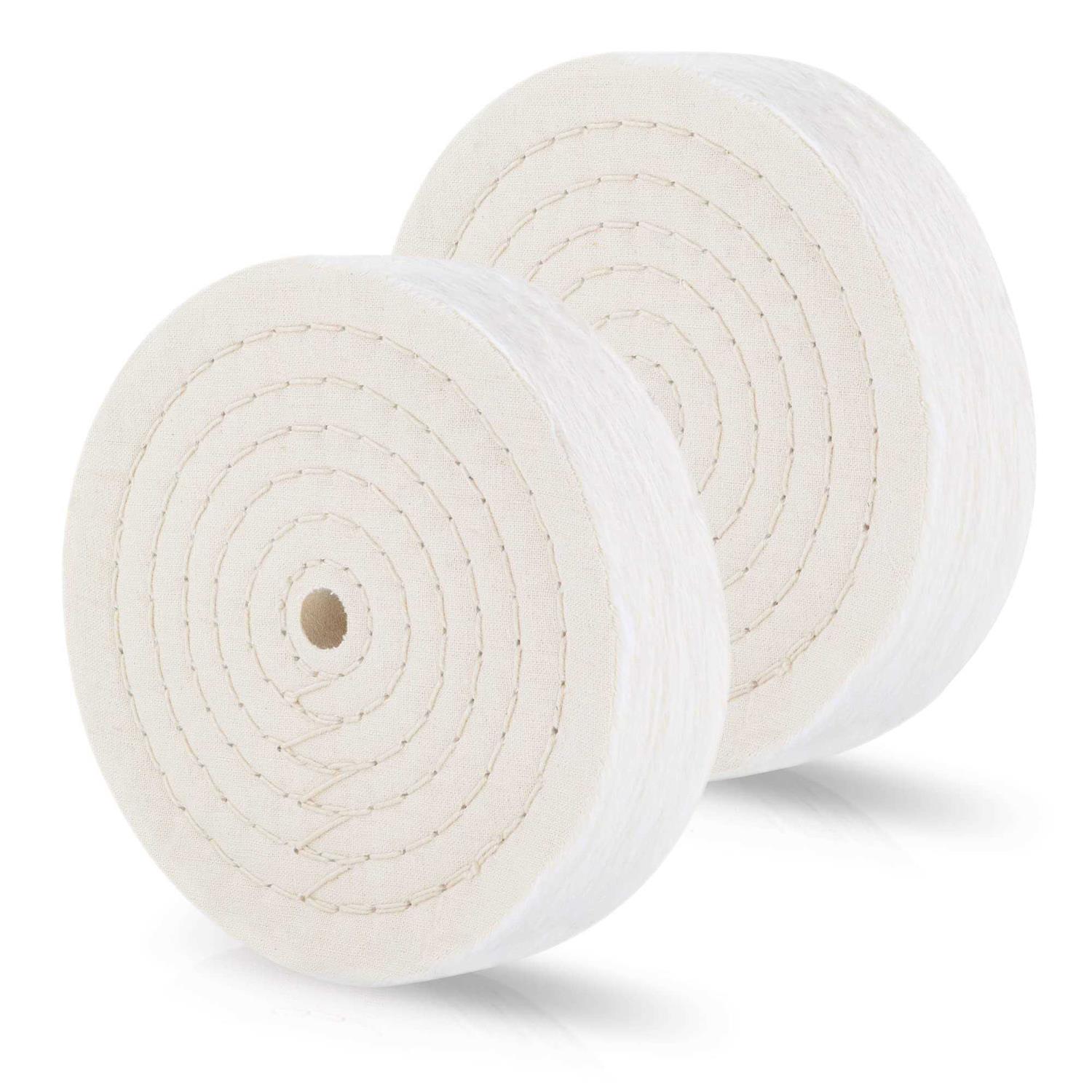 Drixet Buffing Wheels for Bench Grinder 8 Inch Extra Thick Buffing Wheel Fine Cotton Sewn Rigid Treated Spiral with a 1/2” Center Arbor Hole