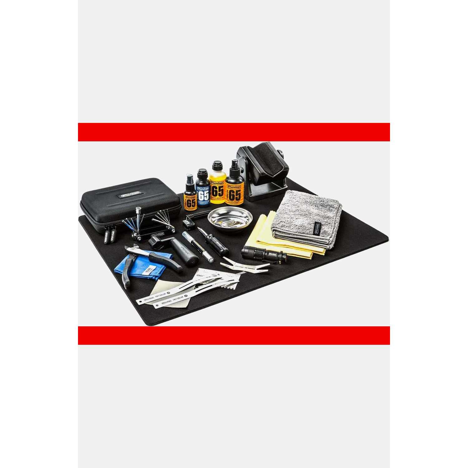 The System 65 Complete Setup Tech Pack has everything you need to treat your guitar or bass to a professional quality setup that keeps your instrument looking and performing its best for years to come. The System 65 Complete Setup Tech Pack has everything you need to treat your guitar or bass to a professional quality setup that keeps your instrument looking and performing its best for years to come. With everything from the Setup Mat and Neck Cradle to the Setup Tool Kit on hand, all you’ll need is a flat surface. Includes a bonus System 65 Guitar Tech Kit Formula 65 Polish & Cleaner, Fretboard 65 Ultimate Lemon Oil, Ultraglide 65 String Cleaner & Conditioner, and two Polish Cloths for the TLC you won’t get anywhere else. Care for your instrument with the high quality tools preferred by the world’s top musicians for more than 20 years.