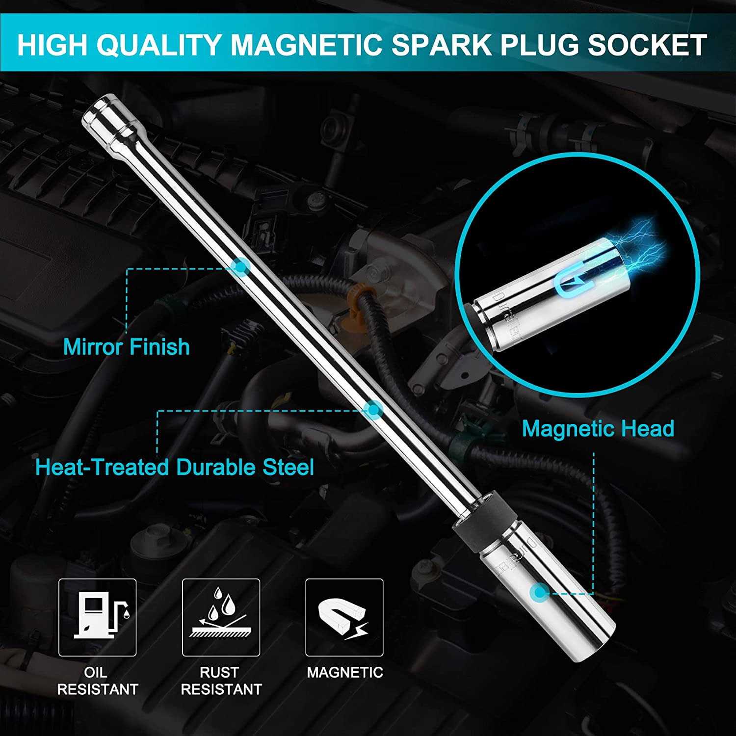 - 【MAGNETIC CORE DESIGN】Magnetic core effectively hold the spark plug more convenient and minimizes damage.