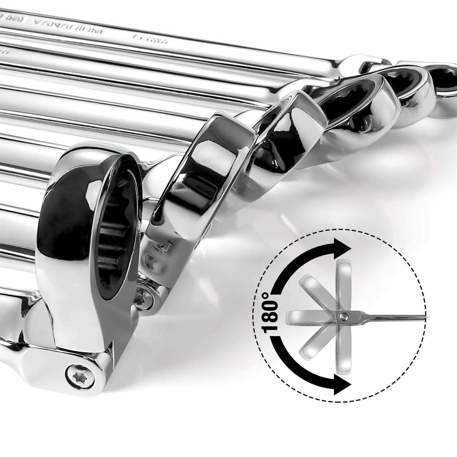 12×13 mm extra long flex-head box end wrench. Total length of wrench 32.2 cm (12.67 inch). Made of premium chrome vanadium steel, Heat treated for maximum strength, lasting durability. The unique ultra-long design can increase the torque, which is easier and more labor-saving than other box wrenches on the market. Two convenient sizes allow you to easily tighten or loosen more bolts simply by flipping the wrench over. It is convenient to work in a narrow space. The ratchet mechanism in the box end allows you to turn fasteners without removing and repositioning the wrench. 72-tooth ratchet gear needs a minimum of 5 degree swing arcs that is perfect for restricted, hard to reach work spaces 180 degree rotating flexible heads allow you to apply leverage at any desired angle and get around obstructions great for tight spaces design. Ideal for getting into tight spots. Practical design, widely applicable in industries as vehicle repairing and maintaining, machinery, electric power and Household making it ultra-versatile for a variety of tasks and jobs.