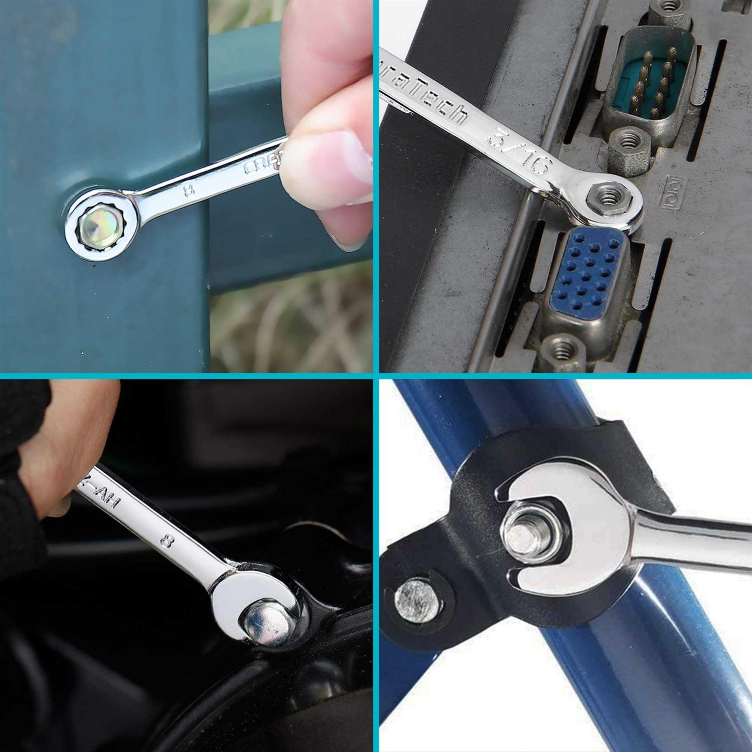 DuraTech Mini Wrench Set, Midget Combination Wrench Set, 20-Piece, Metric & SAE, 4-11mm & 5/32″ – 7/16″, Lightweight, with Rolling Pouch